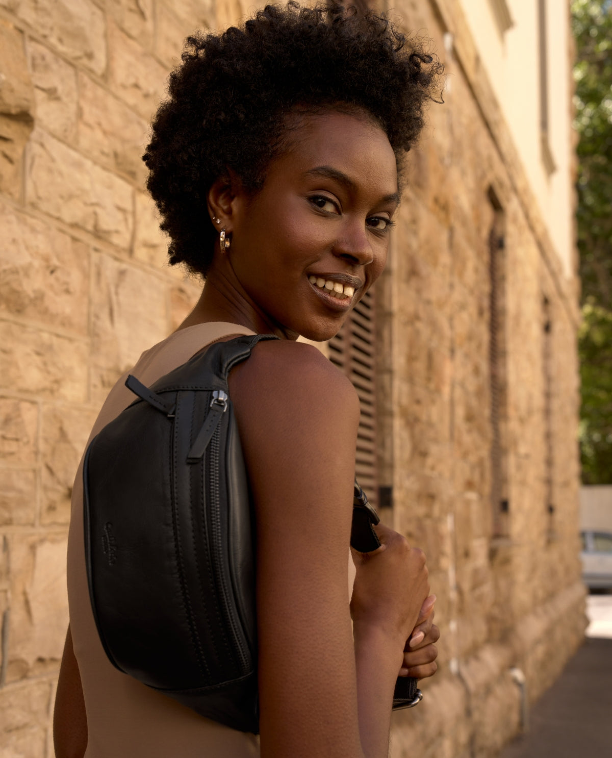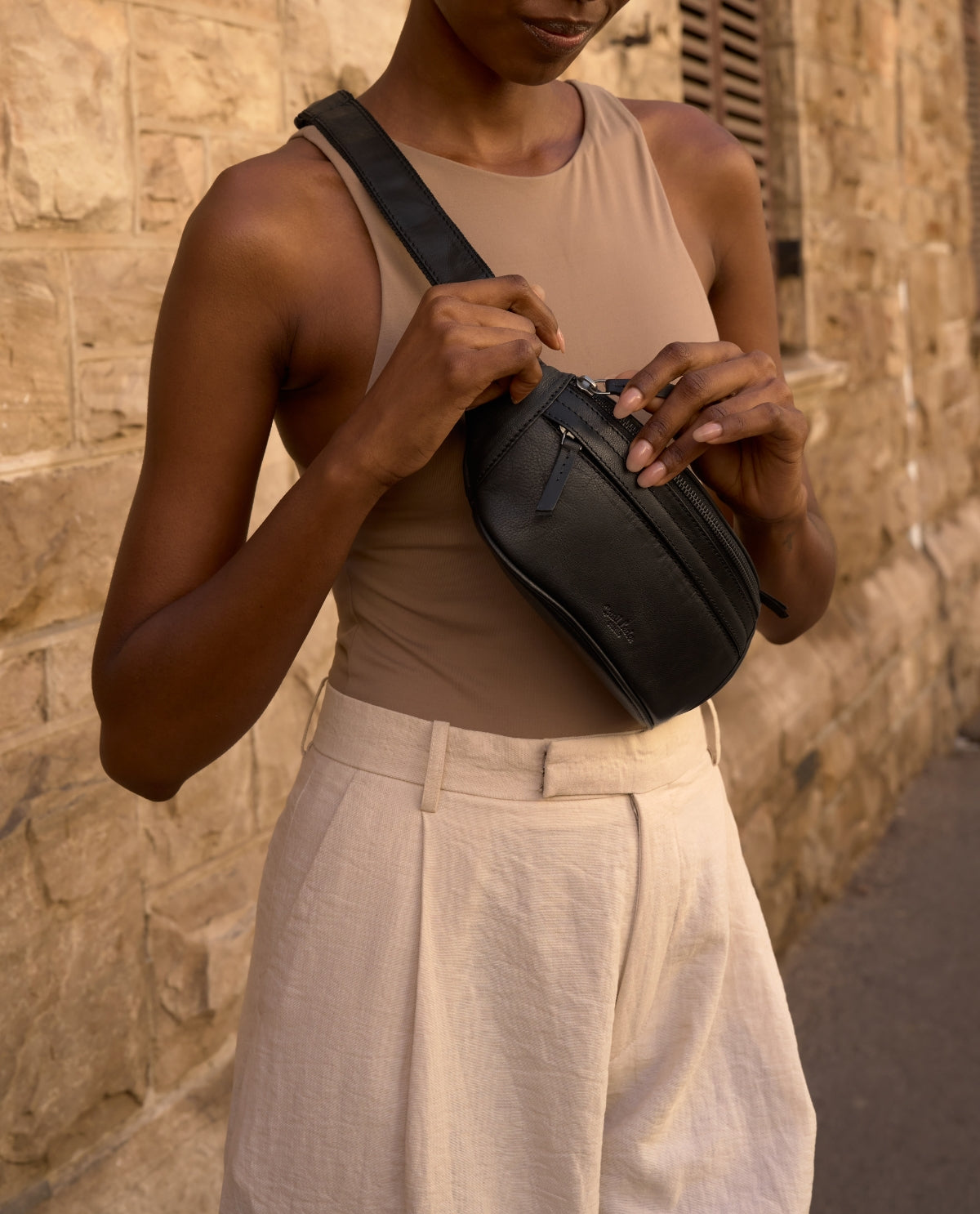 Mit dem längenverstellbaren Gürtel und einem stabilen Schnappverschluss kannst Du „Spencer“ ganz nach Belieben entweder um die Hüfte oder als Crossbody-Bag tragen. Portemonnaie, Smartphone und Schlüssel finden problemlos Platz – und noch vieles mehr. „Spencer“ ist unkompliziert, praktisch und einfach gut für Deinen urbanen Lifestyle.