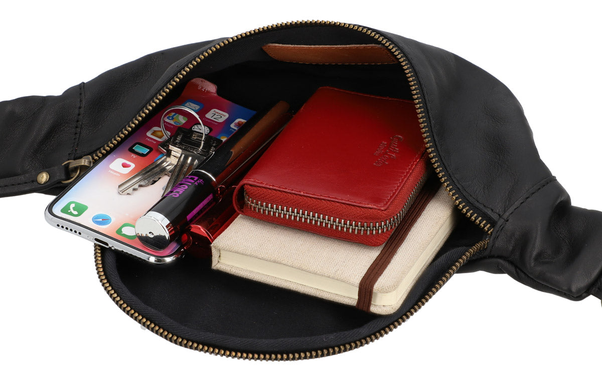 Limited Edition - Bauchtasche Gürteltasche Brustbeutel Schwarz Leder