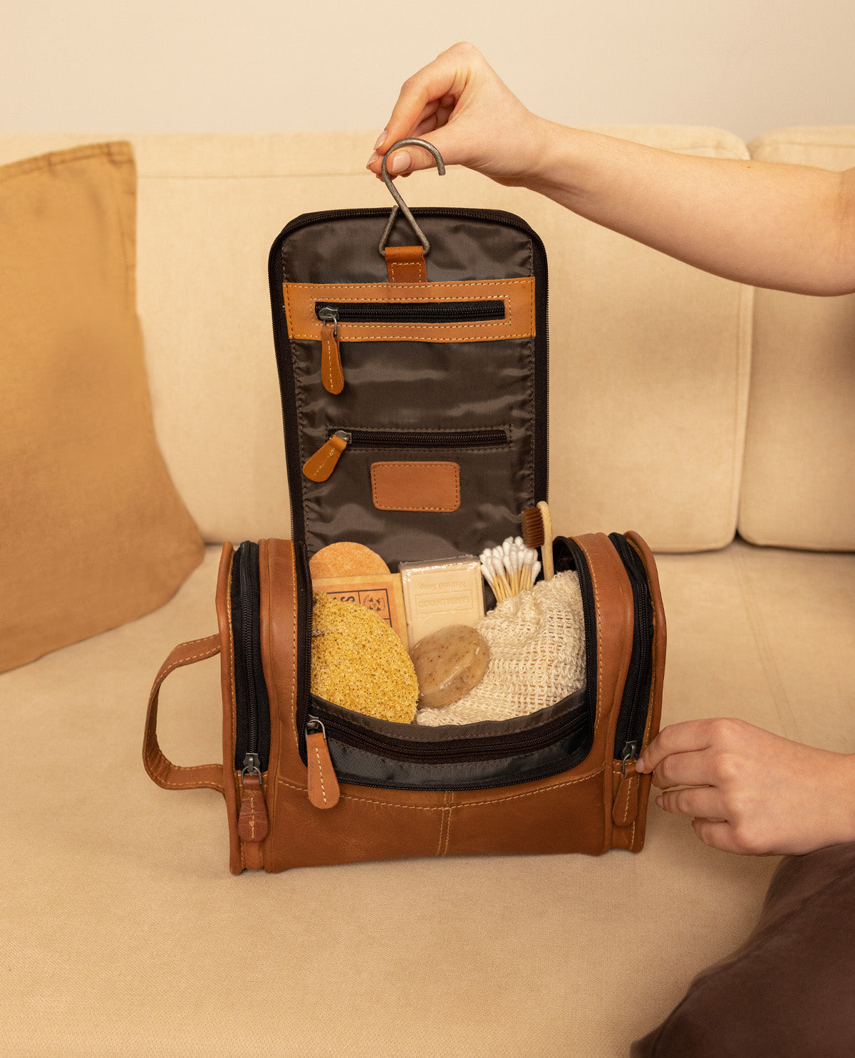 Kulturbeutel mit Haken zum Aufhängen