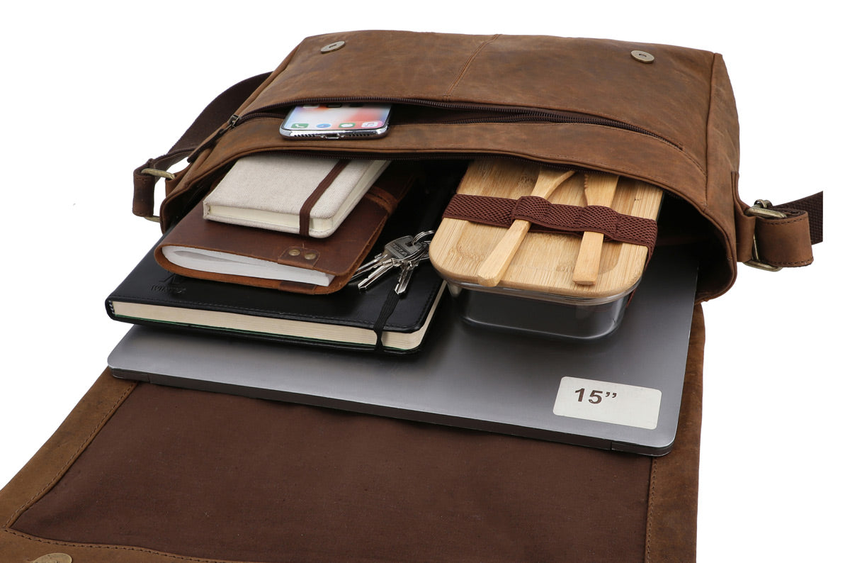 Die perfekte Umhängetasche für Herren: Vintage Ledertasche in Braun