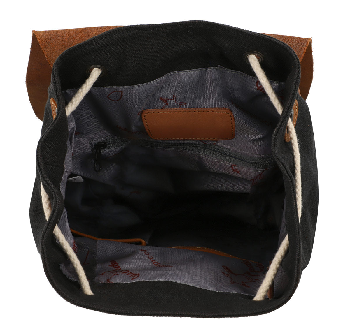 Die Collegerucksack selbst ist aus strapazierfähigem Canvas und gibt dem Fahrradrucksack einen robusten Body. Mit einem Fassungsvermögen von ca. 8 Litern bietet dir "Camille D." genügend Stauraum für Notizen, Trinkflasche, Aufladegerät, Dokumente und Stiftemäppchen. Ein Kordelzug sorgt derweil für zusätzliche Sicherheit, sodass deine essenziellen Dinge auch nicht herauspurzeln. Das geräumige Hauptfach ebenso wie die kleineren Innenfächer sind aus wasserfestem Polycotton und halten so kleinere Auslauf-Malheure im Zaum. Egal ob für den Alltag, Uni, Schule oder Arbeit - mit „Camille D.“ lässt dich nicht im Stich.