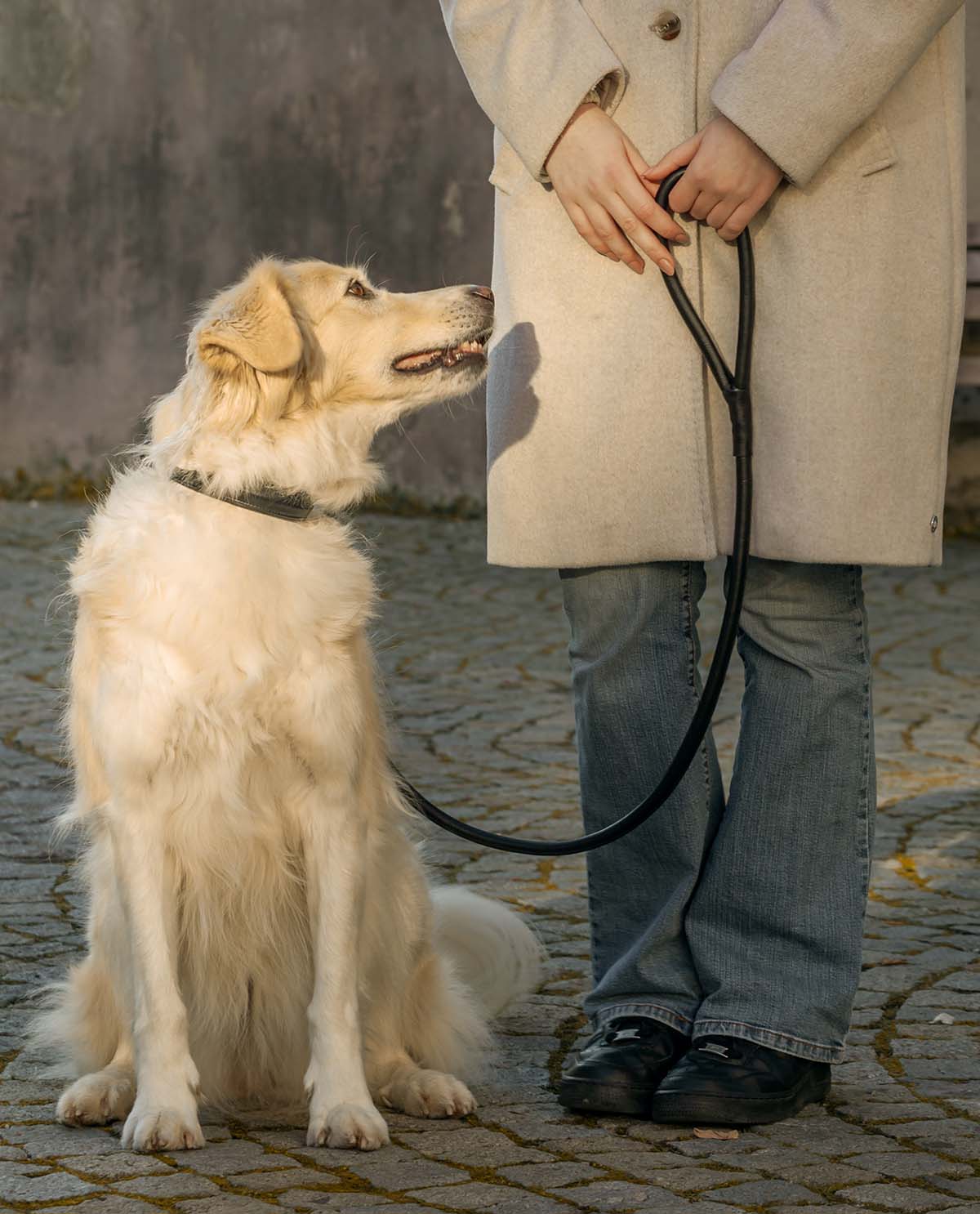 Mit der „Abelard“ Leder Hundeleine erhältst Du nicht nur ein praktisches, sondern auch ein ästhetisches Produkt. Das zeitlose schwarze Leder passt zu jedem Hund und verleiht Deinen Ausflügen einen Hauch von Raffinesse. Der robuste Karabinerhaken sorgt für eine sichere Verbindung und lässt sich mühelos an Deinem Hundegeschirr befestigen. Die Leine ist ideal für den täglichen Gebrauch – strapazierfähig, aber gleichzeitig elegant.