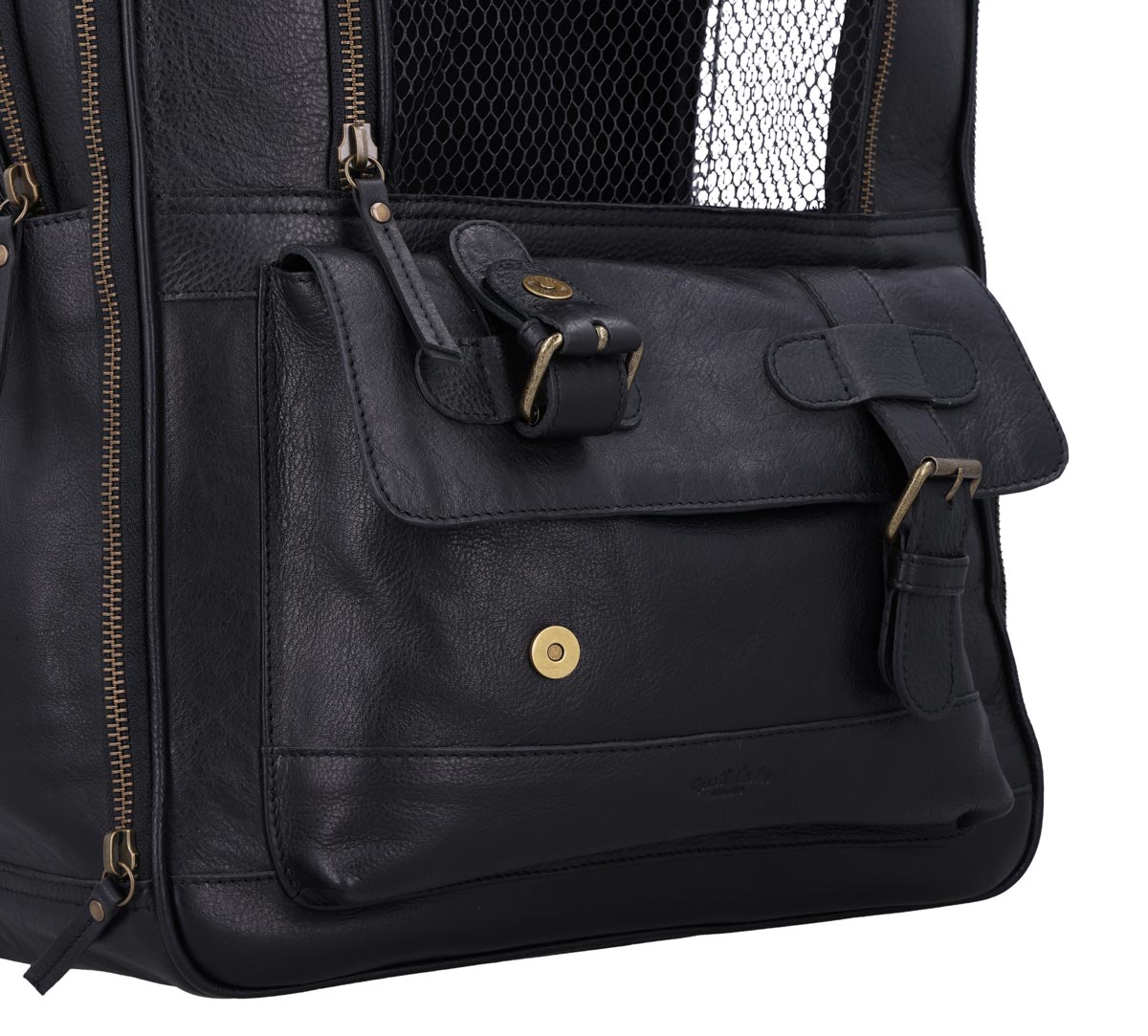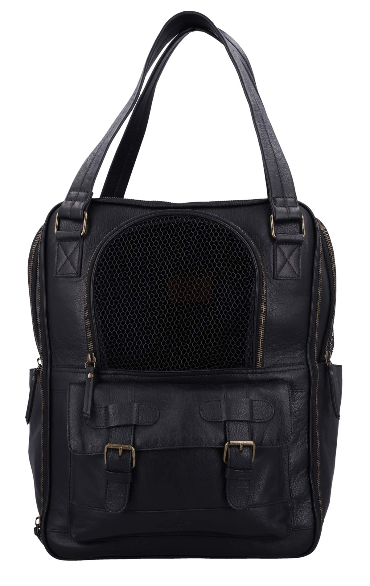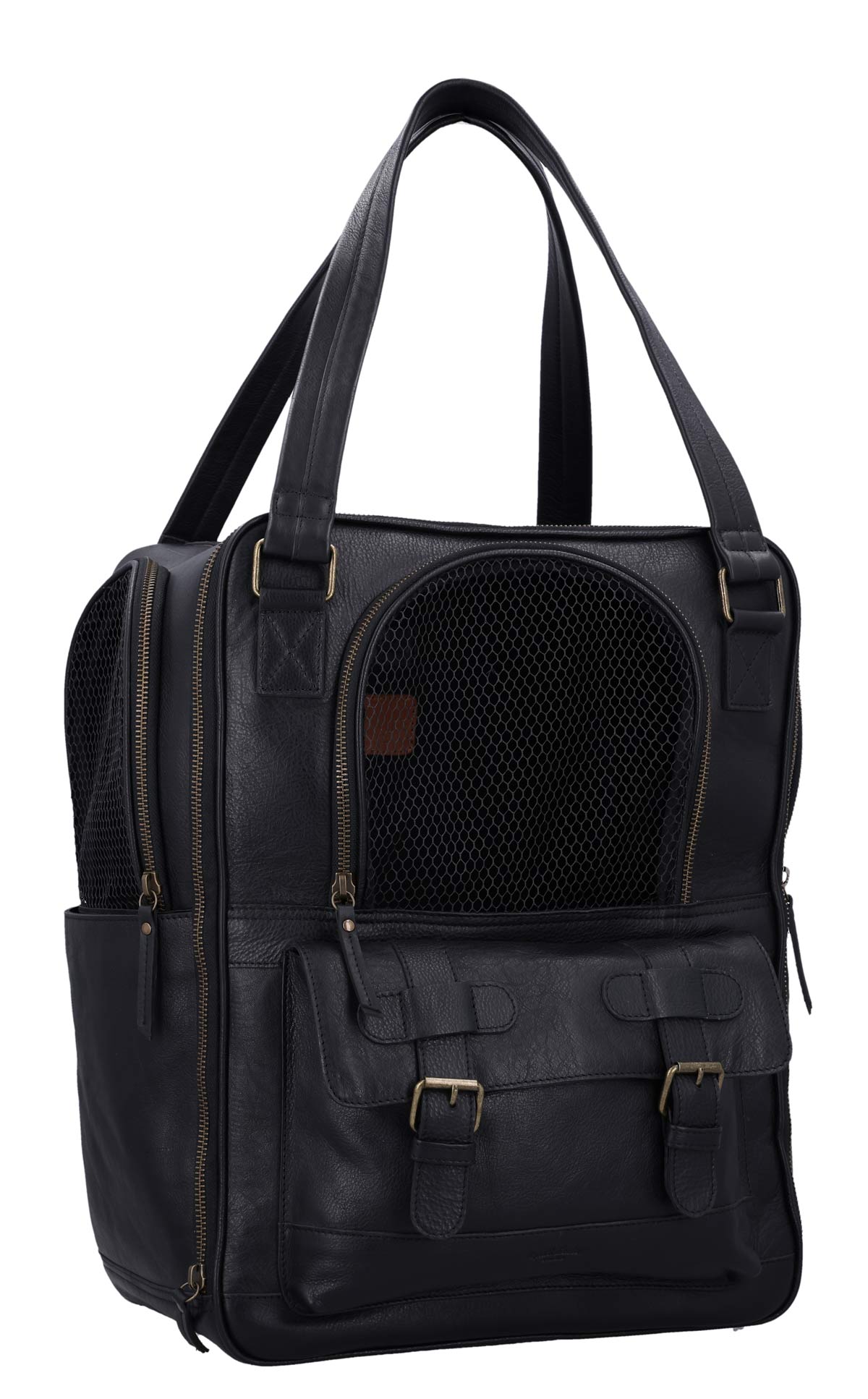 Der "Madox" ist die perfekte Lösung für alle Tierbesitzer, die ihre Haustiere sicher und stilvoll transportieren möchten. Dieser Tiertransportrucksack aus hochwertigem schwarzem Leder kombiniert Funktionalität mit einem eleganten Design. Du kannst den Rucksack entweder als Rucksack oder als Tasche tragen, was Dir maximale Flexibilität im Alltag bietet. Die durchdachte Konstruktion ermöglicht es Deinem Haustier, problemlos zu atmen, da Teile der Tasche mit Netzstoff ausgestattet sind, der für eine gute Belüftung sorgt.