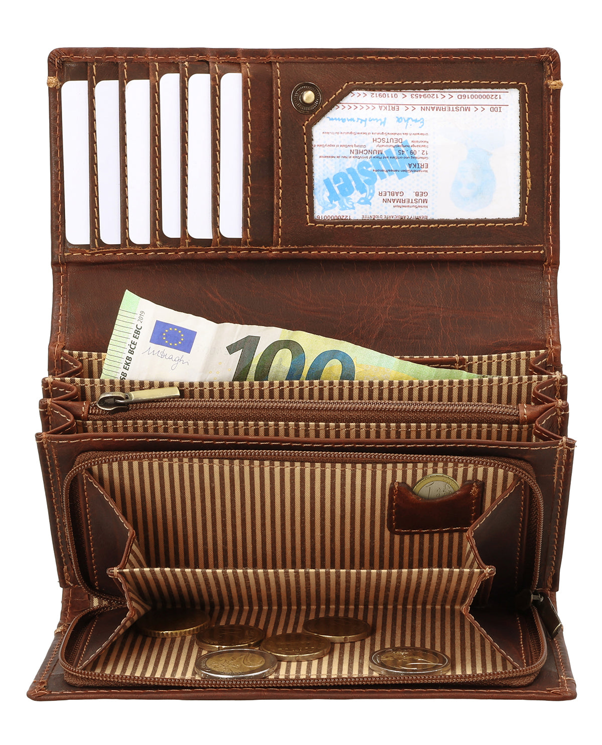 Die Geldbörse "Angelique" überzeugt mit 7 Kartenfächern, von denen eines mit einer transparenten Folie versehen ist – ideal für Ausweis oder Lieblingsfoto. Zwei Reißverschlussfächer bieten sicheren Stauraum für Münzen und andere Kleinigkeiten, während Fächer für Scheine und Quittungen für Ordnung sorgen. Besonders praktisch ist dabei das integrierte Münzfach, in dem Du eine Münze schnell griffbereit hast. So hast Du alles stets übersichtlich verstaut und gut geschützt. Dank der durchdachten Struktur und des hochwertigen Designs ist "Angelique" die perfekte Kombination aus Eleganz und Alltagstauglichkeit – eine Geldbörse, die Dich stilvoll begleitet.