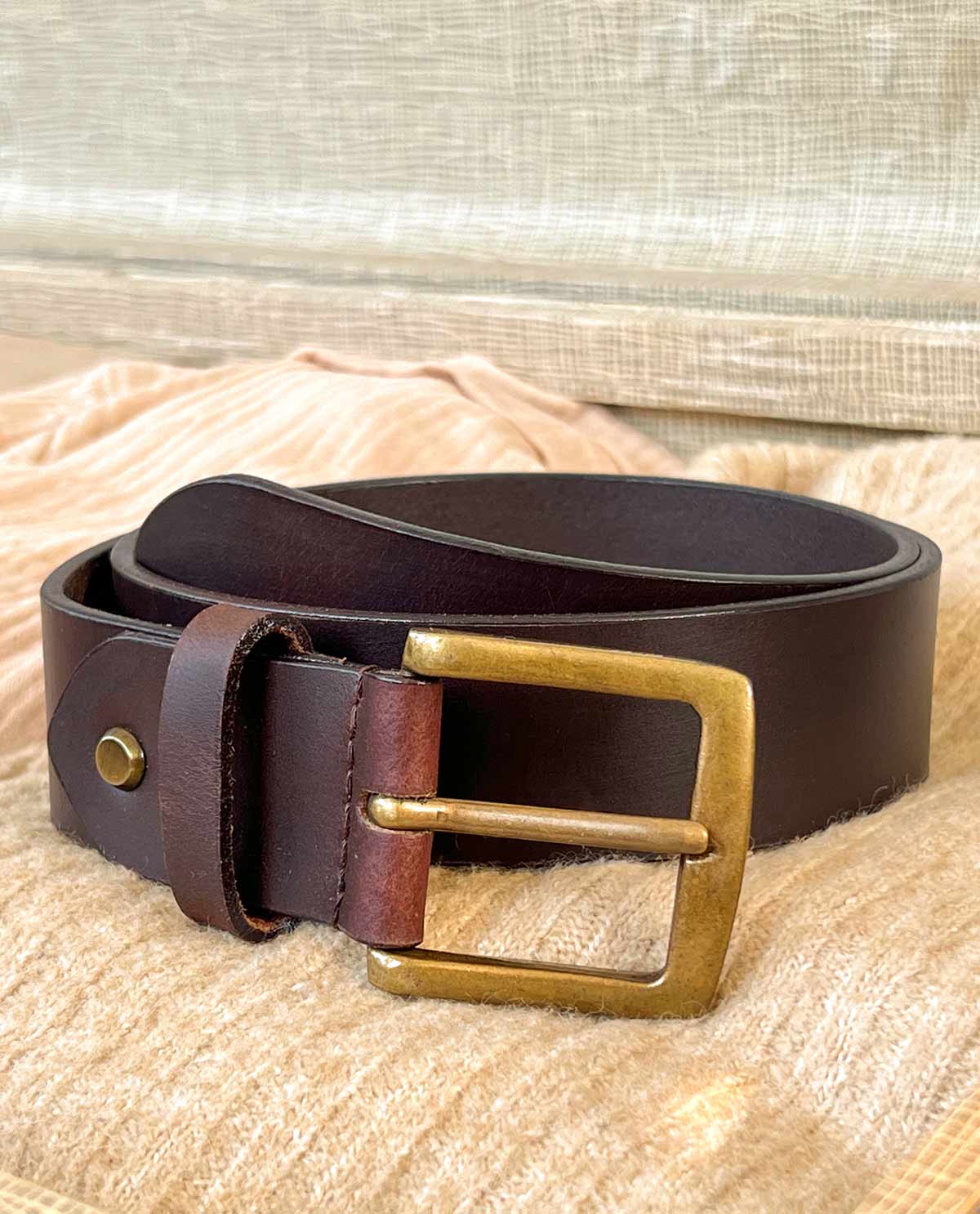 Gürtel schlichter Ledergürtel mit goldener Schnalle Accessoires Herren Damen Unisexgürtel Braun Leder
