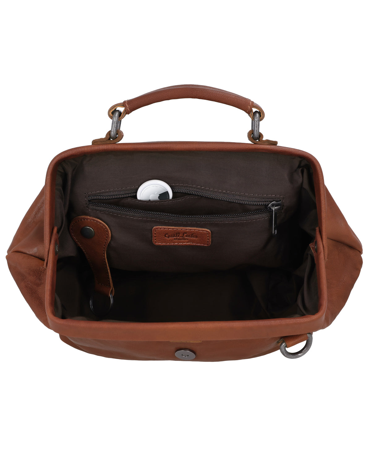 Für Fans klassischer Arzt- und Hebammenkoffer ist „Lillith“ ein absolutes Must-have! Sie interpretiert diesen einzigartigen Look neu und kombiniert ihn mit der Größe einer kompakten Handtasche. Praktisch im Alltag: Mit integriertem Schlüsselanhänger hast Du Deine Essentials schnell griffbereit, und ein verstecktes AirTag-Fach gibt Dir unterwegs ein extra gutes Gefühl. Außerdem kannst Du „Lillith“ auf zwei Arten tragen – klassisch in der Hand oder mit dem zusätzlichen Trageriemen als Crossbody-Bag. Inspiriert durch den urbanen Berliner Großstadt Flair vereint „Lillith“ Stil und Funktionalität.