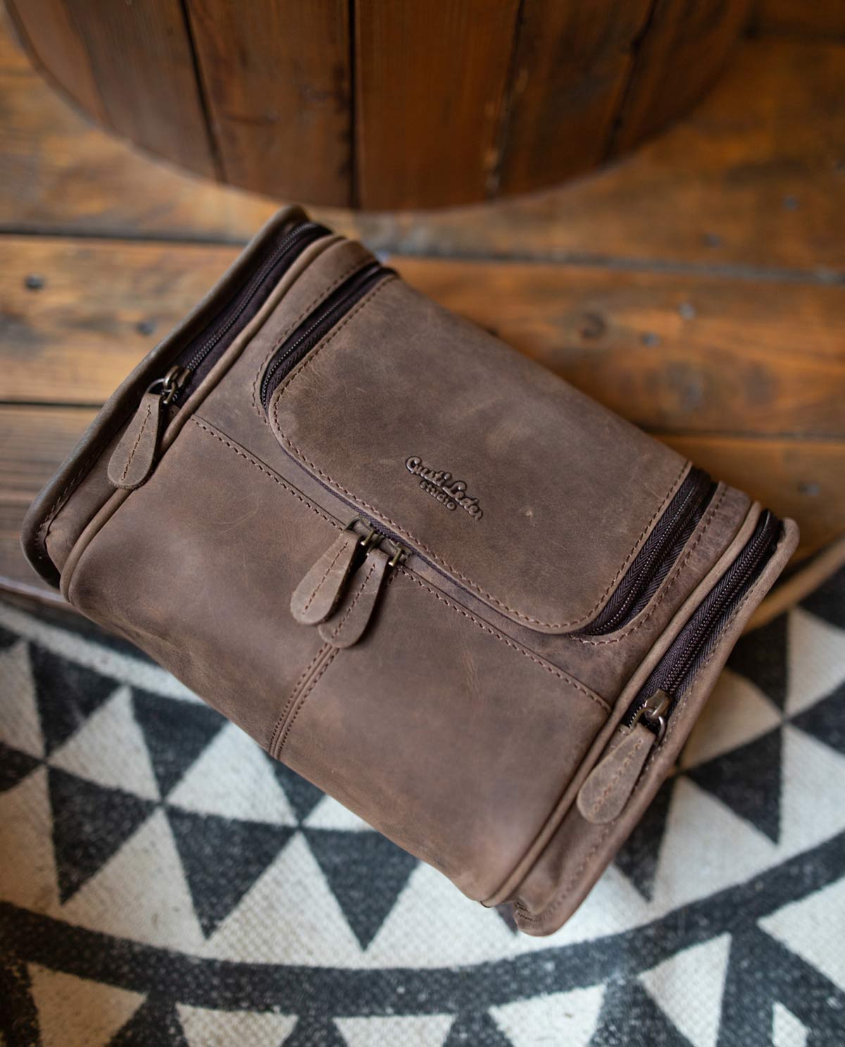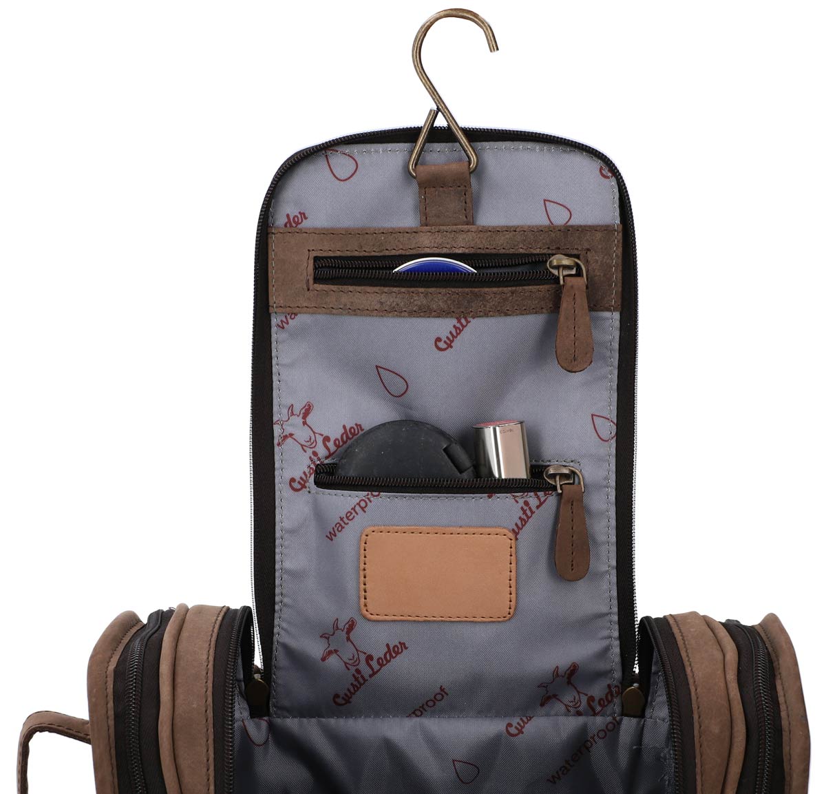 Wärst Du ein kleines Wichtelmännchen, könntest Du in dieser Waschtasche super Verstecken spielen. „Chester“ bietet unglaublich viele Möglichkeiten, all Deine Hygieneartikel sicher zu verstauen. Neben seinen vielseitigen Taschen sorgt er auch für die nötige Praktikabilität, wenn alles ordentlich verstaut sein muss. In den beiden Seitentaschen ist alles gut untergebracht. Durch den praktischen Haken kannst Du „Chester“ in jedem Bad dieser Welt einfach aufhängen. Der wasserabweisende Innenraum verzeiht auch kleine Shampoo-Malheure. Und weil es bei Gusti Leder nicht nur um Funktionalität geht, kommt unsere Kulturtasche zudem äußerst stylisch daher. Um dem noch die Krone aufzusetzen, kannst Du zwischen stylischem Braun und elegantem Schwarz wählen. Was will man mehr? Mit dieser intelligenten Waschtasche bist Du auf Reisen jederzeit gut ausgestattet. Inspiriert durch den urbanen Berliner Großstadt Flair verbindet „Chester“ Style mit Funktion.