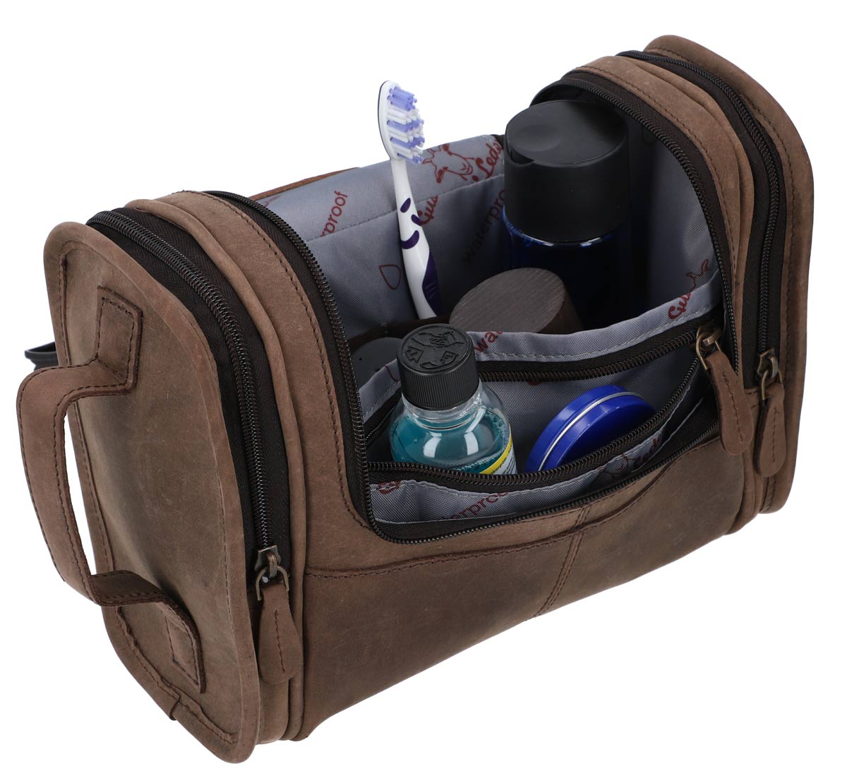 Kulturtasche Kosmetiktasche Waschtasche Berliner Großstadt Flair Braun Leder