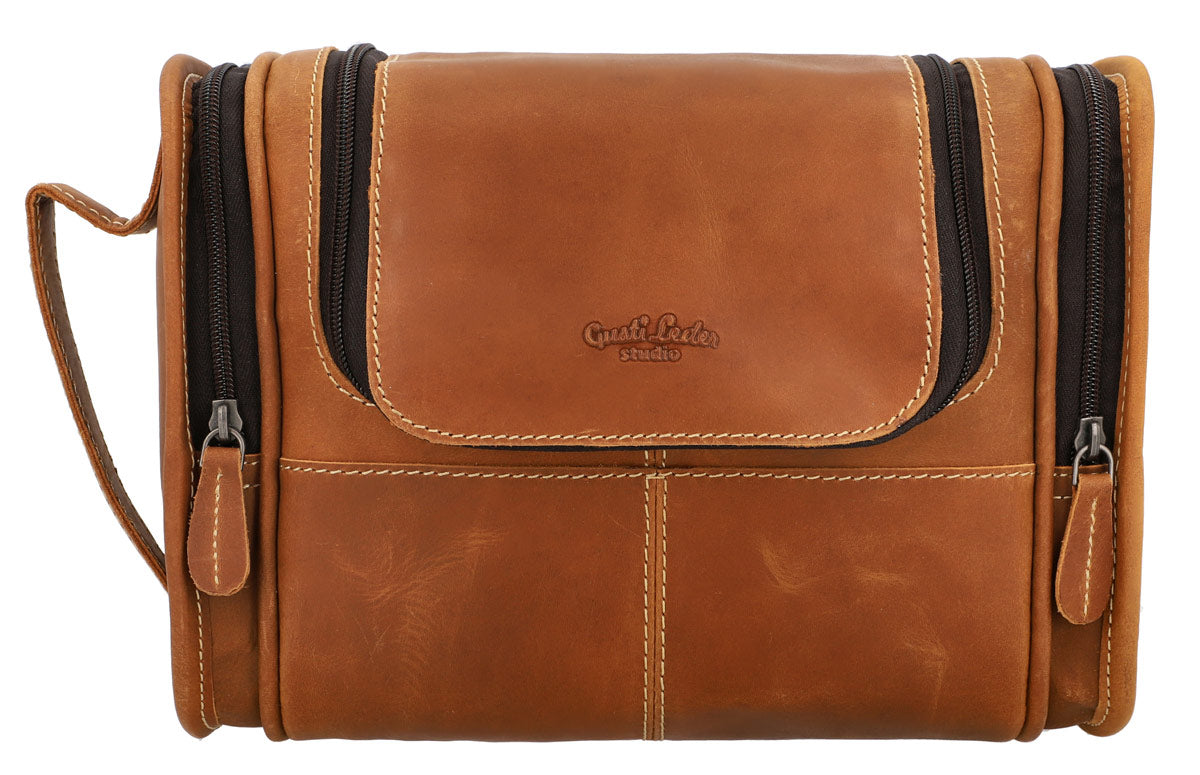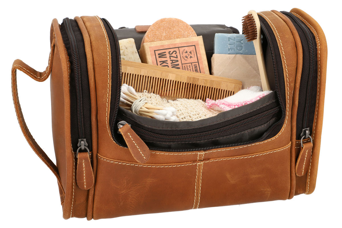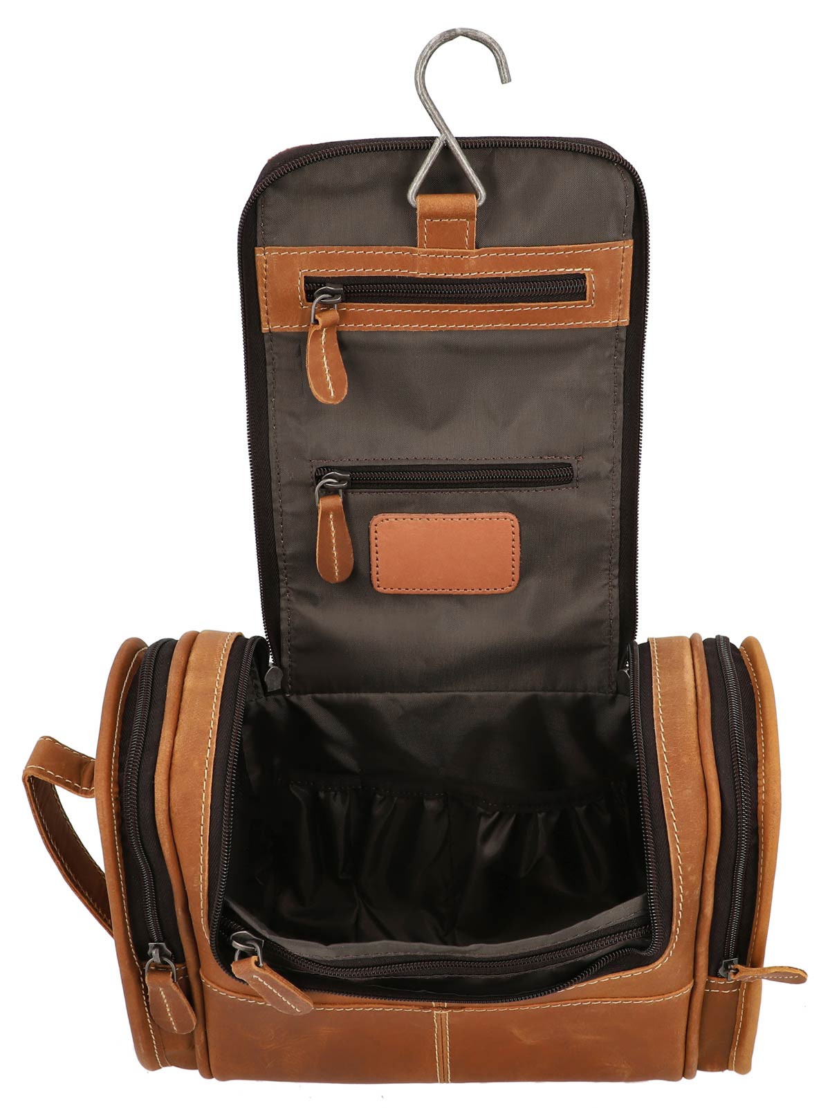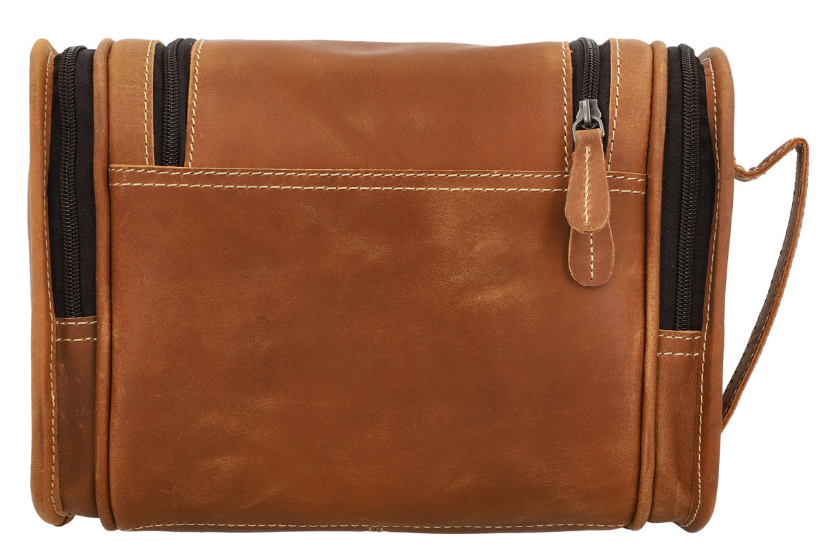 Kulturtasche Kosmetiktasche Waschtasche Berliner Großstadt Flair Braun Leder