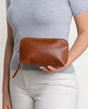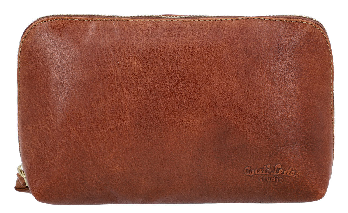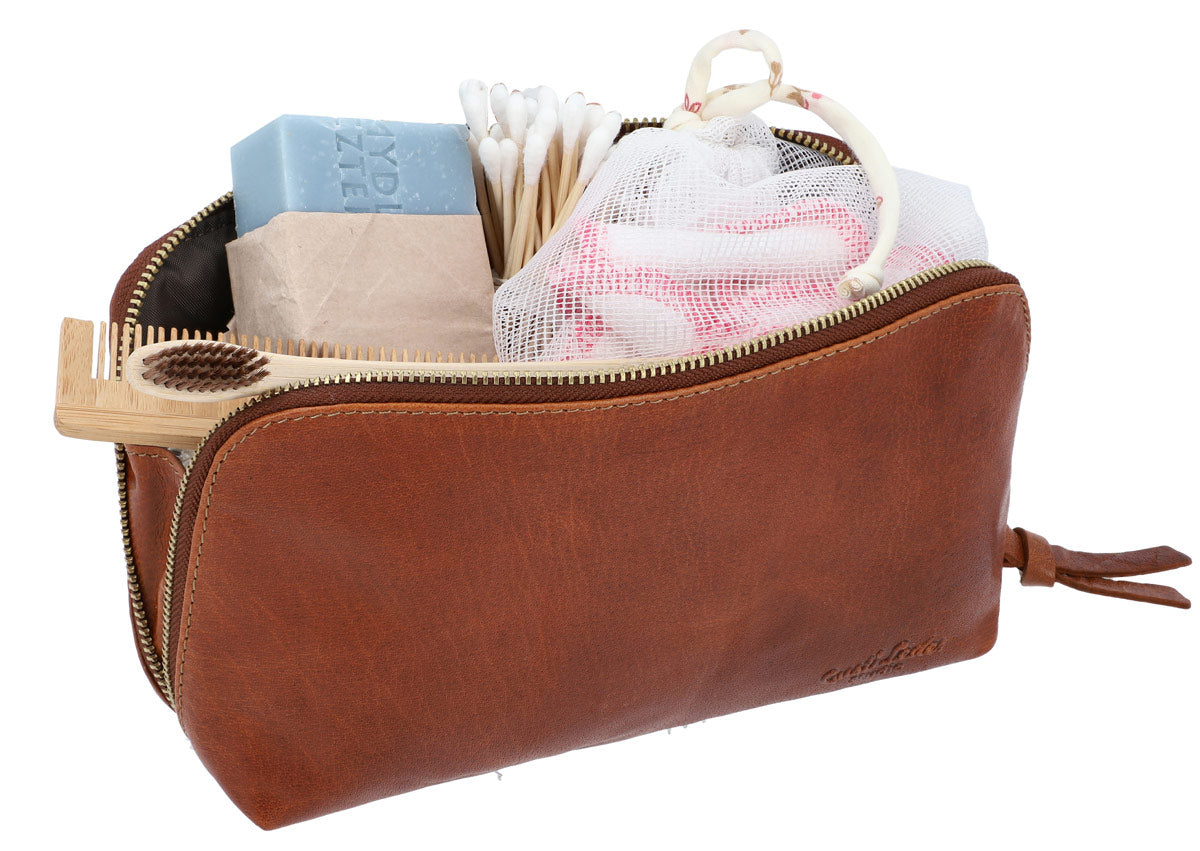 Waschtasche Kulturtasche Kulturbeutel Kosmetiktasche Ledertasche Make-up Tasche Designed in Berlin Braun Leder