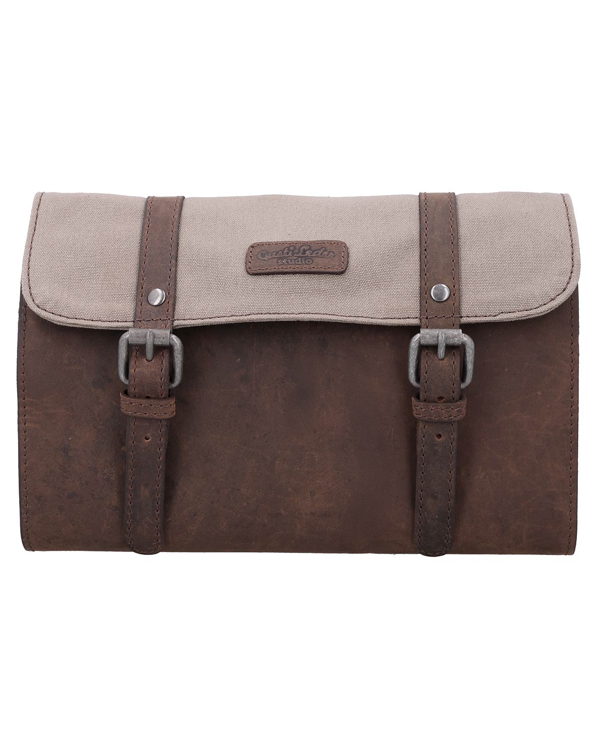 Waschtasche Kulturtasche Kosmetiktasche für Damen und Herren Khaki Berliner Großstadt Flair Khaki Leder & Canvas