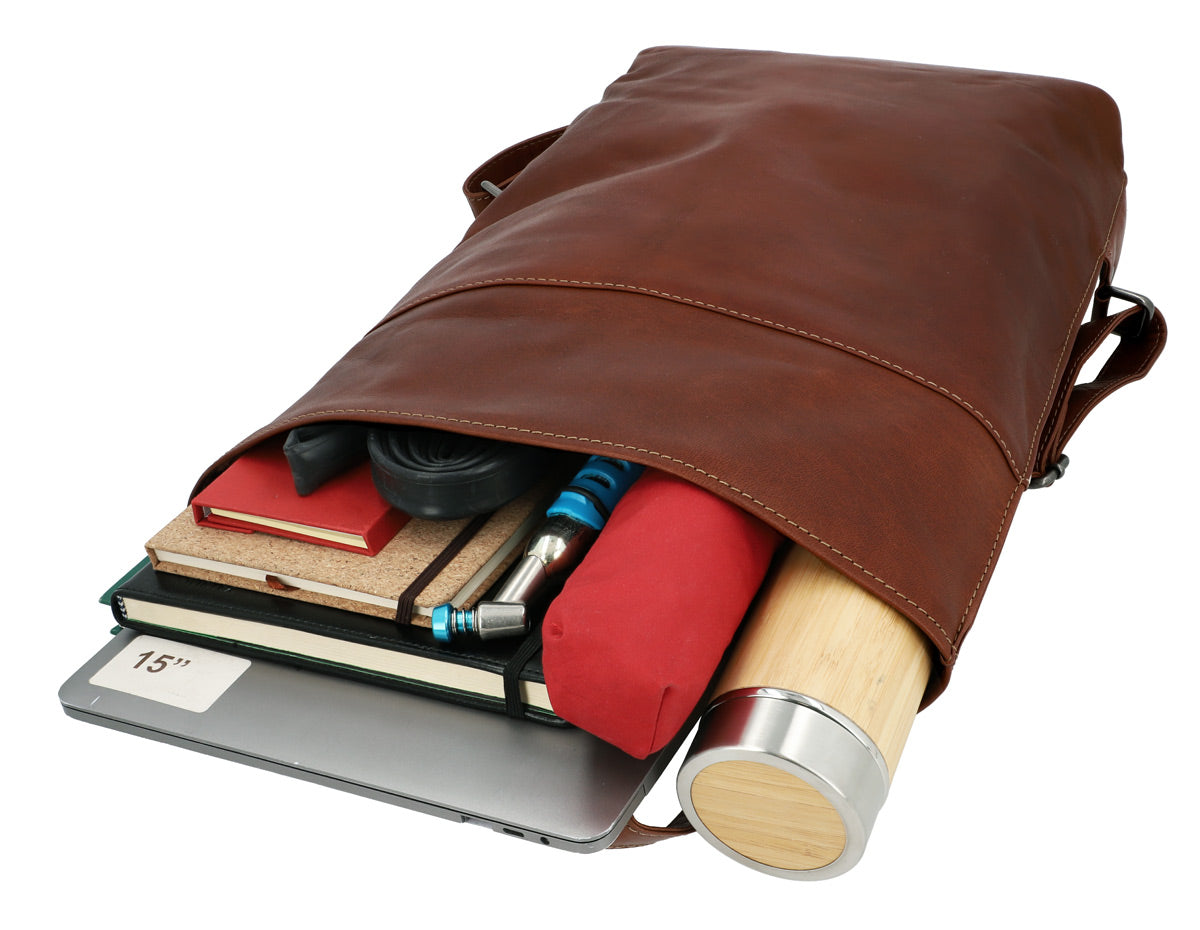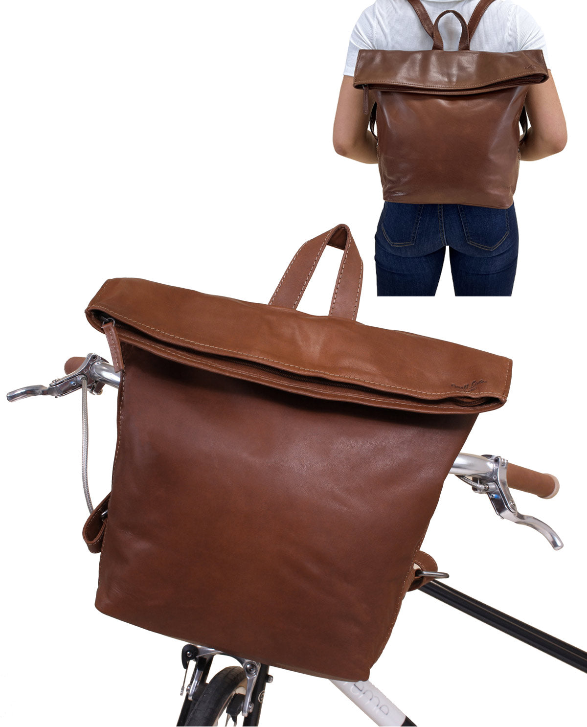 Rucksack inkl. Platte Fahrradrucksack Lederrucksack Cityrucksack Klickfixkompatibel Damen Braun Leder