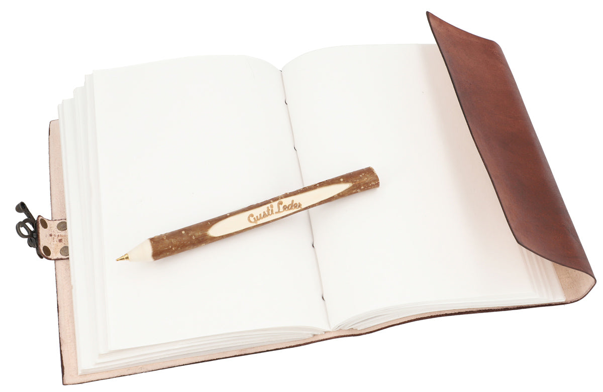 "Sola" bietet dir auf ca. 240 Seiten Raum dich kreativ auszutoben. Der Retro Verschlußhaken sowie das seitliche Flechtdesign gibt "Sola" derweil diesen ganz besonderen Retrocharme vergangener Tage. Aus robustem Büffelleder eignet sie sich aber genauso als besonders schöner Ledereinband sollten die eingelegten Seiten ein mal vollgeschrieben sein - Nachhaltigkeit kann so stylisch sein!