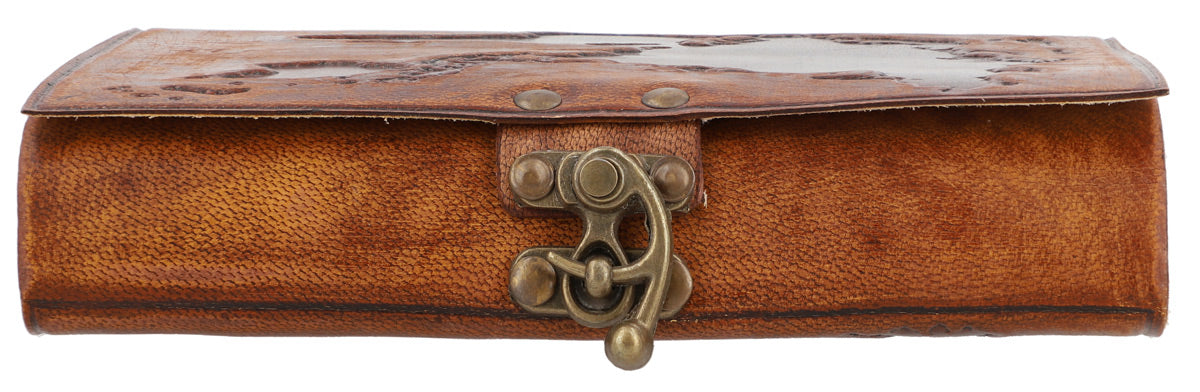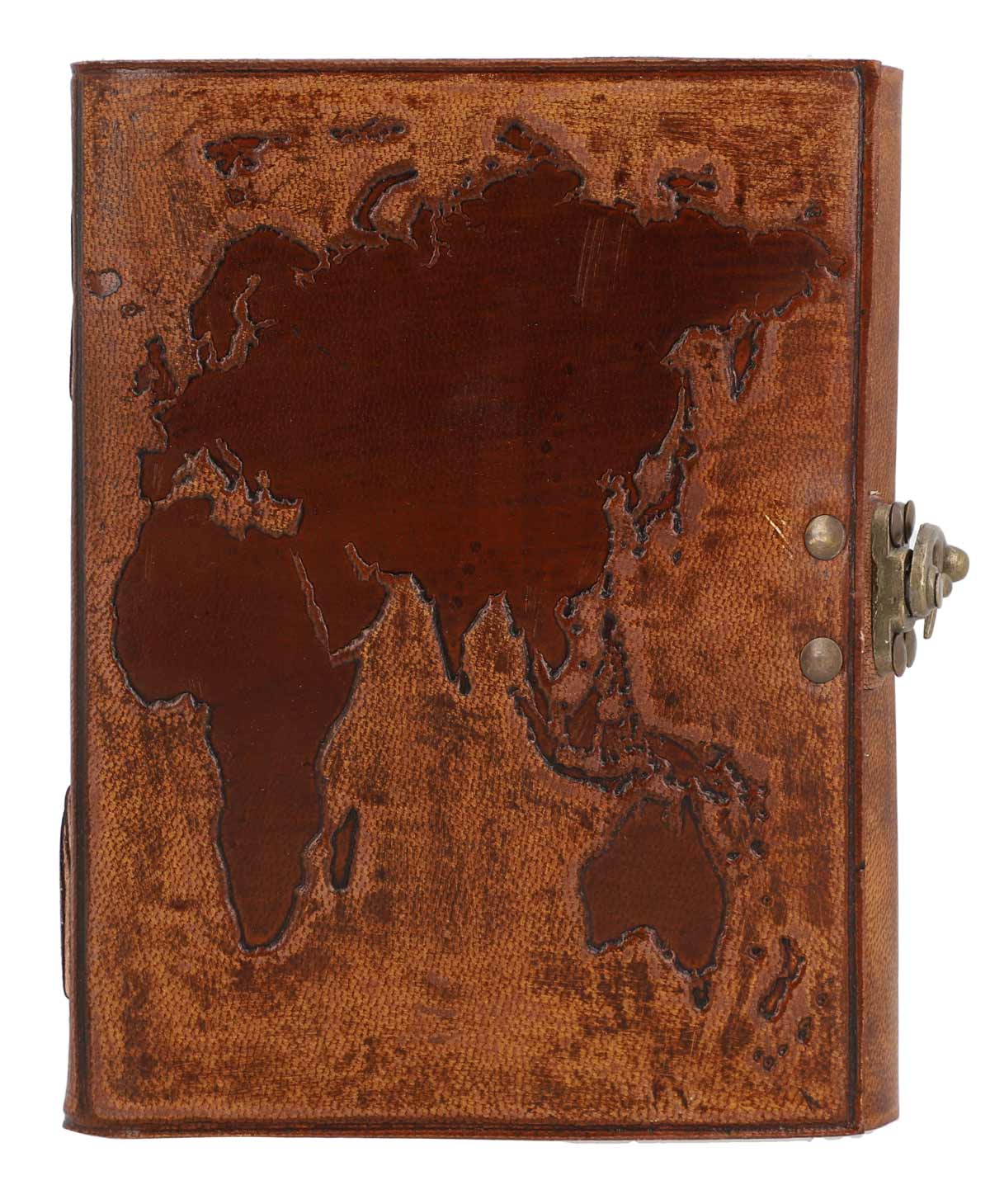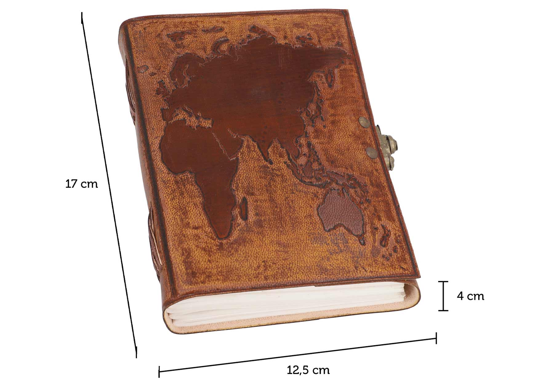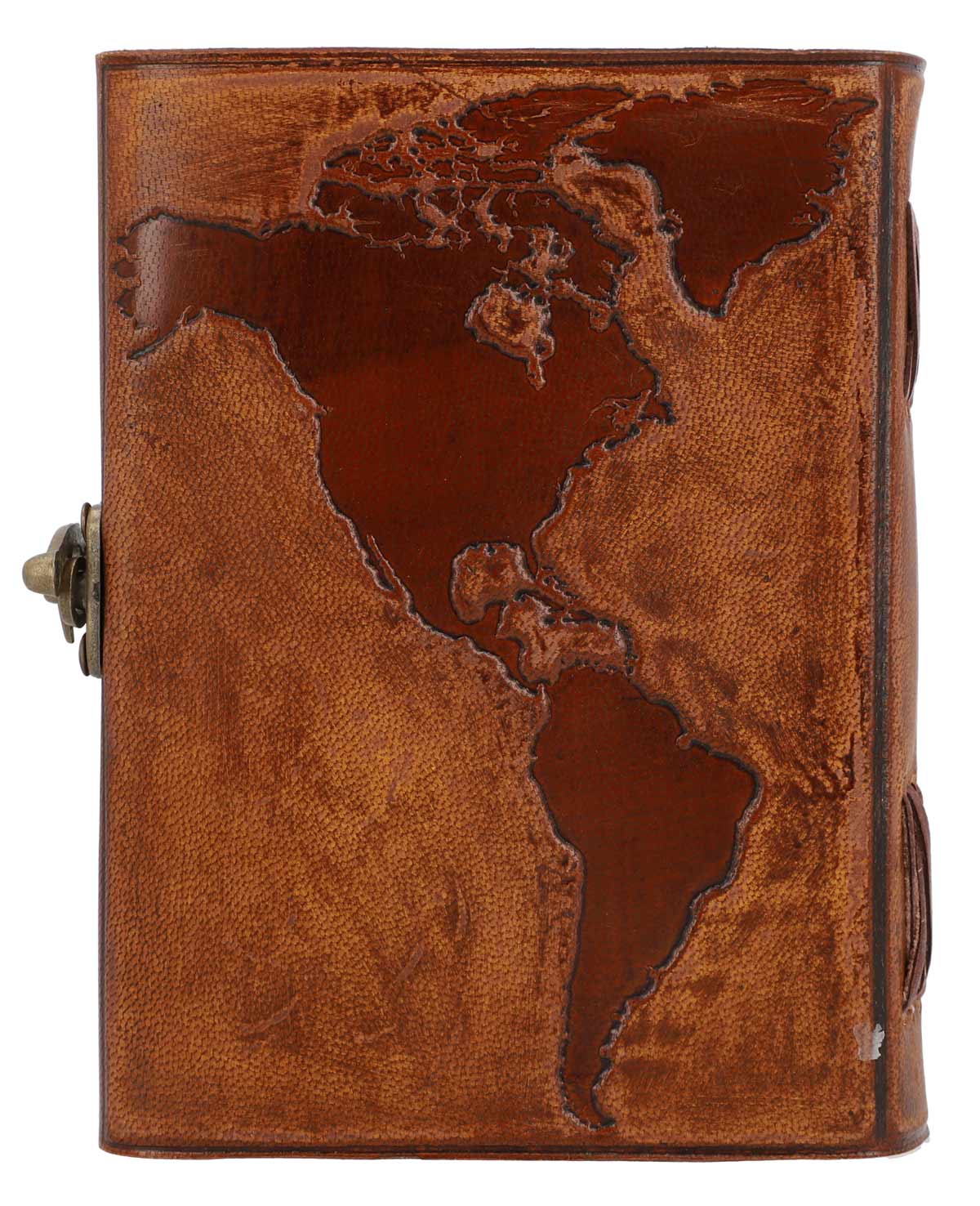 Notizbuch Notizheft Reisetagebuch Weltkarte Tagebuch DIN B6 Braun Leder