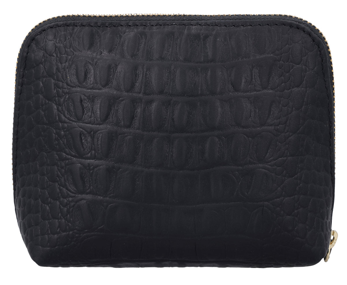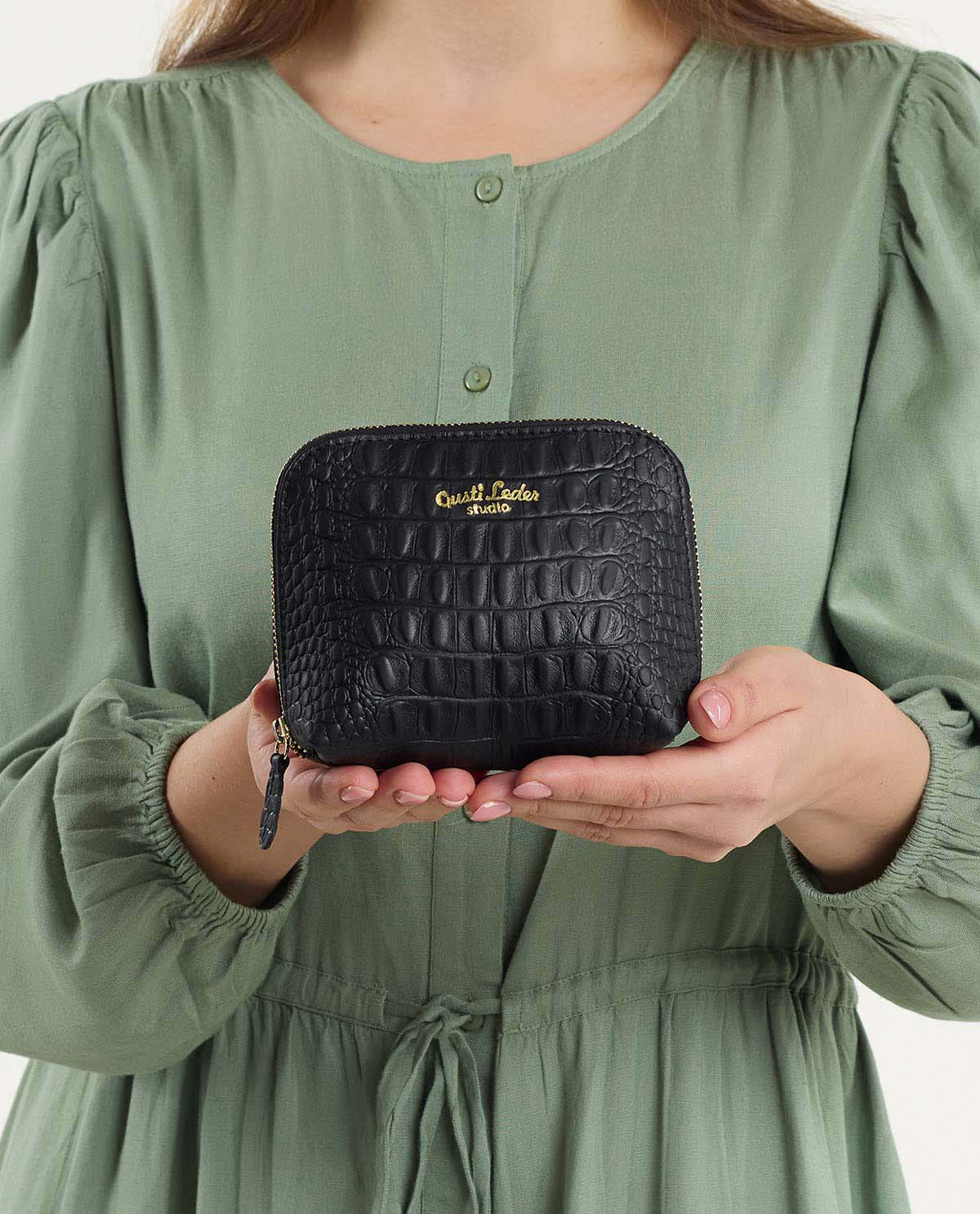 Verlierst Du oft den Überblick in Deiner Tasche und suchst ewig nach Deiner Wimperntusche oder anderen Kleinigkeiten? Dann ist "Leo" genau das Richtige für Dich! Dieses wunderschöne, kleine Täschchen sorgt für Ordnung in den unendlichen Tiefen Deiner Tasche und überzeugt mit seinem stilvollen Design. Gefertigt aus hochwertigem schwarzem Rindsleder, strahlt es eine edle Eleganz aus, die sich mühelos in Deinen Alltag einfügt. Der umlaufende Akzent-Reißverschluss betont die klassische Optik und macht "Leo" zu einem stilvollen Begleiter – dezent, aber dennoch ein Blickfang.