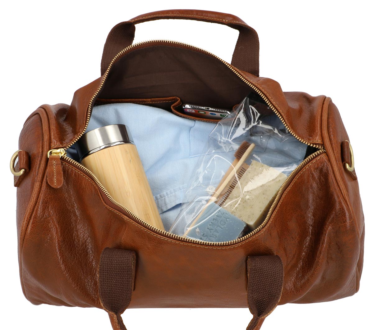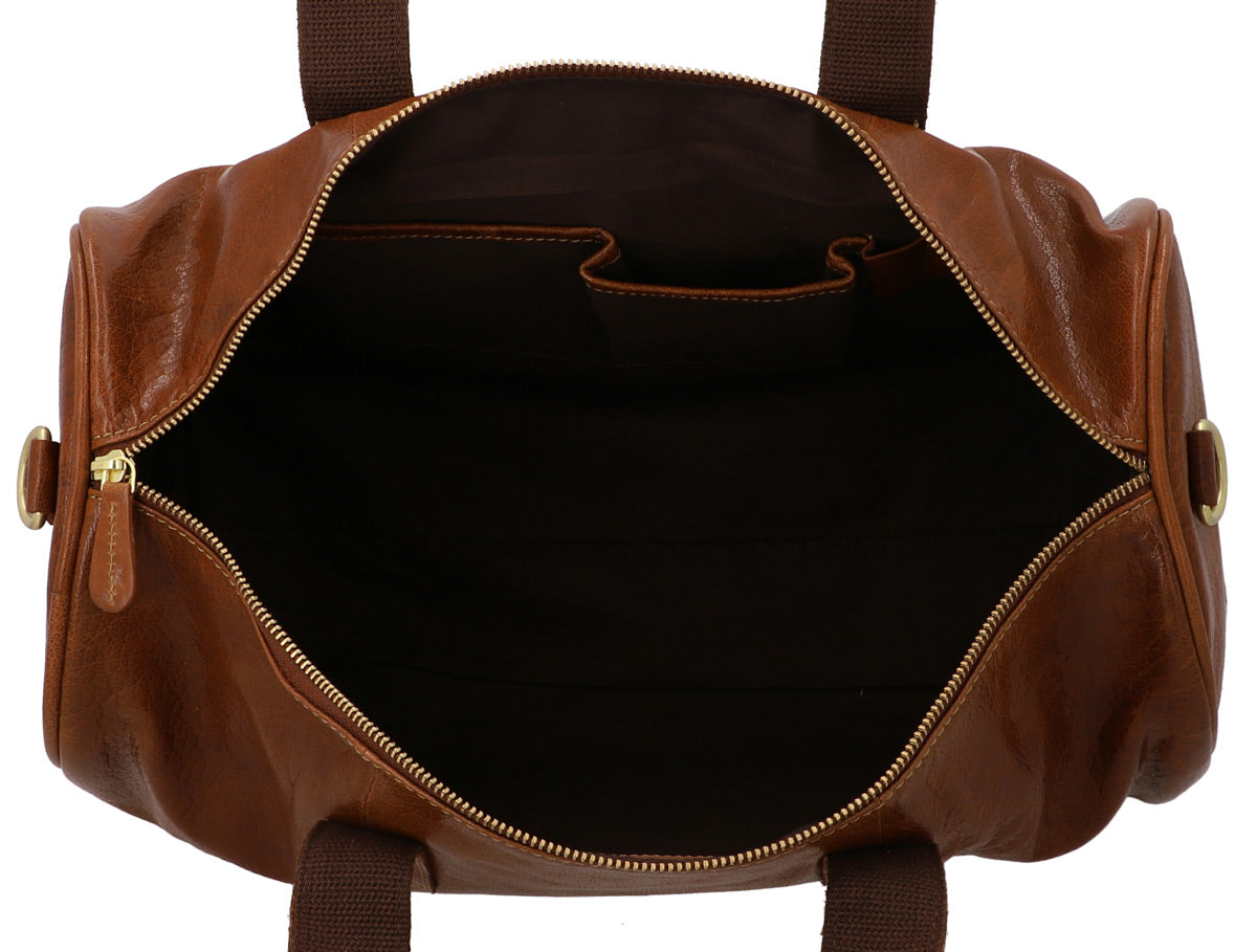 Reisetasche Sporttasche Boardtasche Umhängetasche Schultertasche Riementasche Ledertasche Reisegepäck Weekender Handgepäck Berliner Großstadt Flair Braun Leder 25L