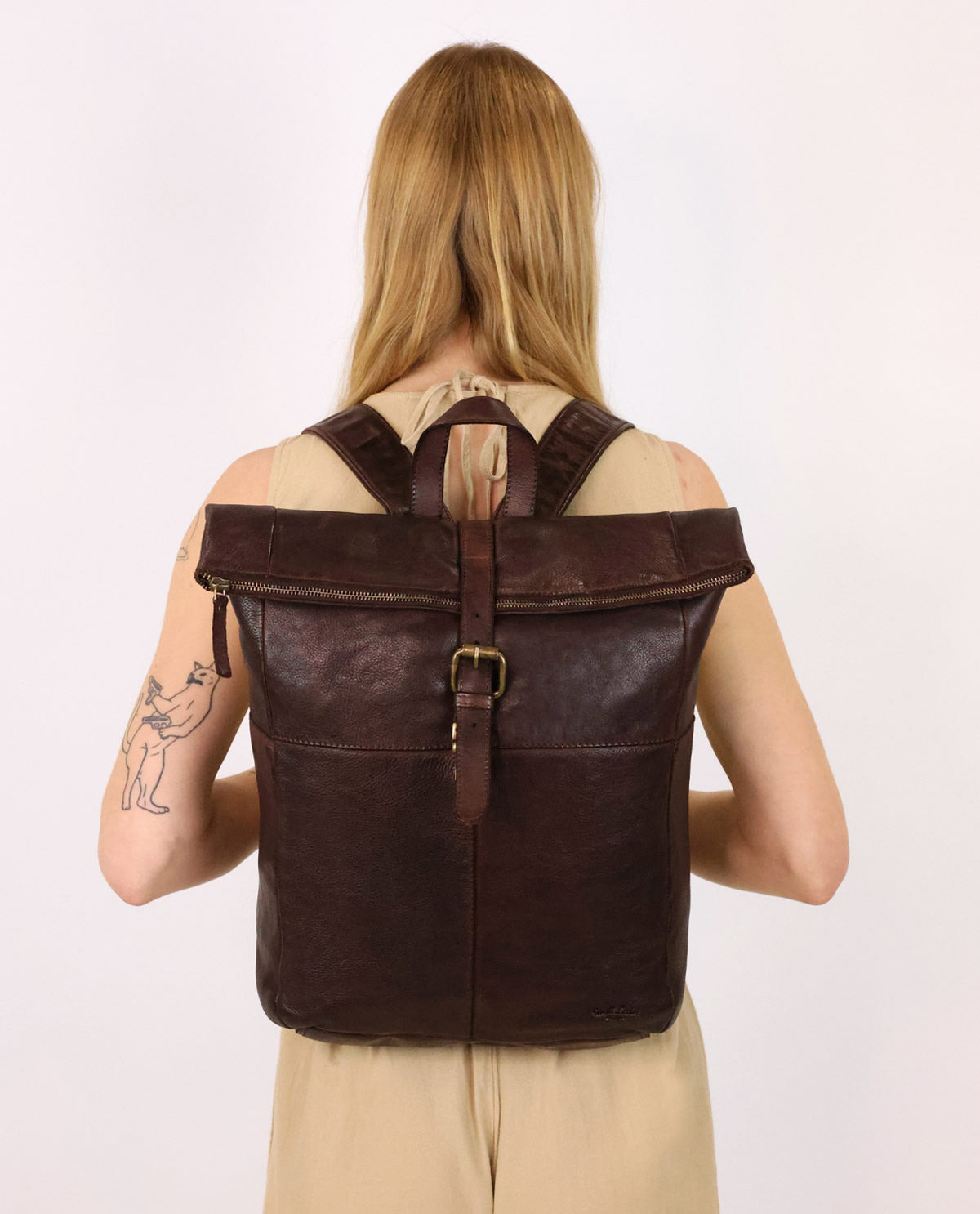Rucksack Lederrucksack Vintage Damen Herren Braun Leder 13L