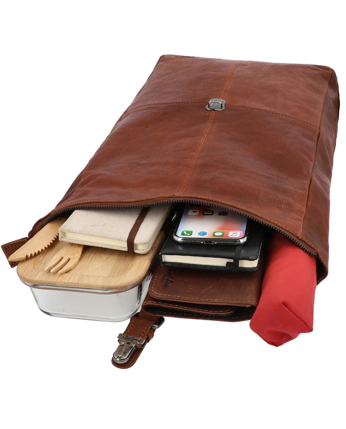 Obwohl „Valja“ nur etwa 9 Liter fasst, bietet er dank hochwertigem Ziegenleder genügend Platz für diverse Notizbücher, Geldbeutel, Stiftmappe und Proviant. Ein kleines Geheimfach auf der Rückseite, verschließbar mit Reißverschluss, sorgt für zusätzliche Sicherheit. Das Metallsteckschloss rundet das Design ab und schützt Dein Hab und Gut zuverlässig vor Wind, Wetter und Staub. Ein treuer Begleiter für Deinen perfekten Vintage-Auftritt.