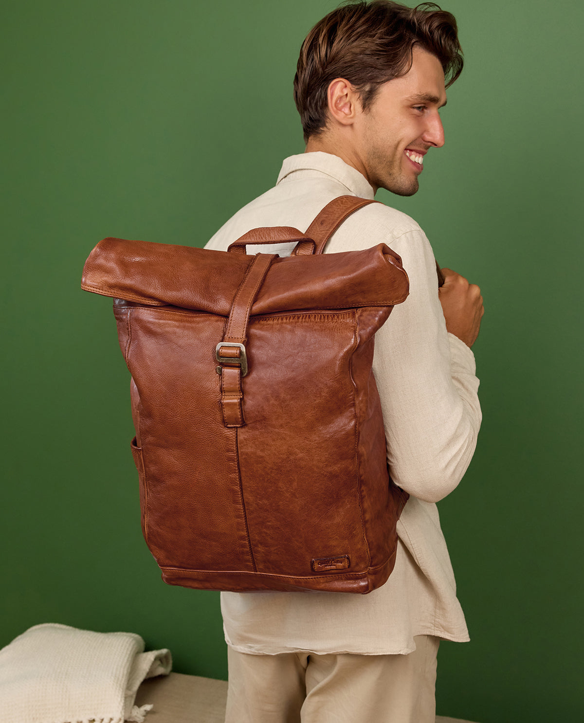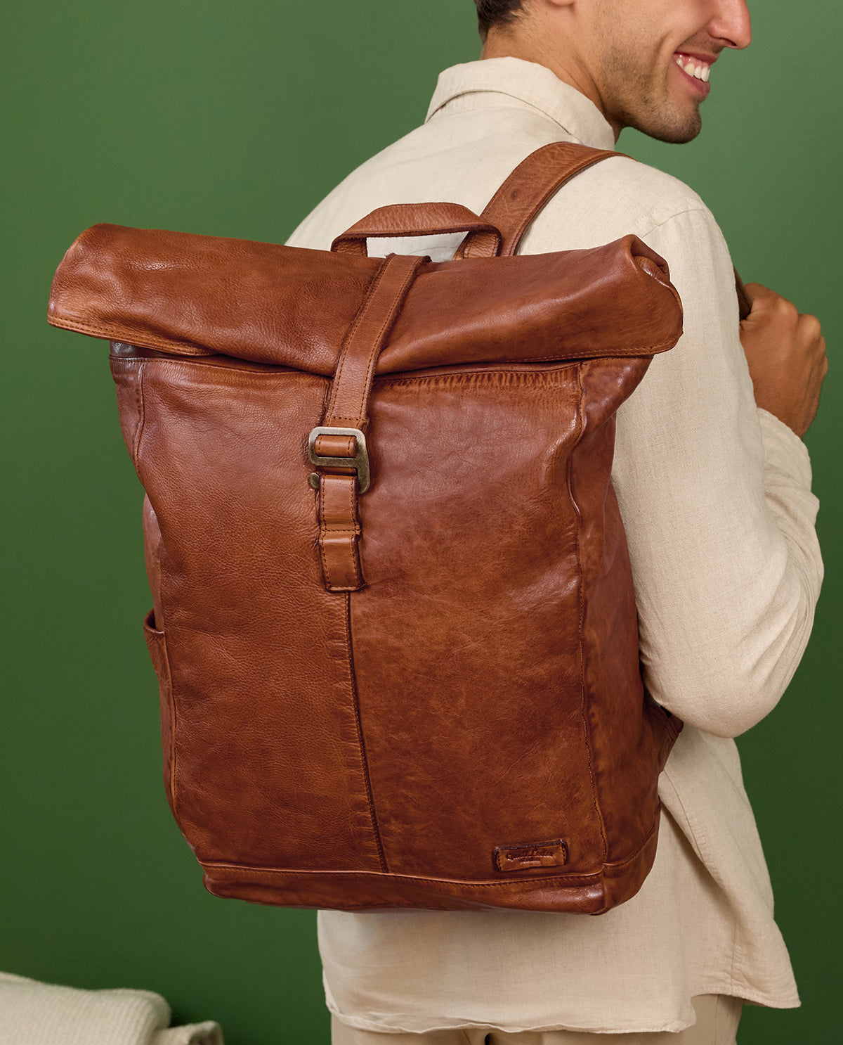 Ob für Schule, Uni oder Arbeit – unser Rolltop-Rucksack „Bendik“ passt einfach immer. Inspiriert durch Berlin überzeugt er mit Flexibilität, hohem Tragekomfort und großzügigem Platzangebot. Dieser klassisch-robuste Daypack aus honigbraunem Leder fällt besonders durch sein trendiges Rolltop auf – ein Look, an dem man momentan einfach nicht vorbeikommt.