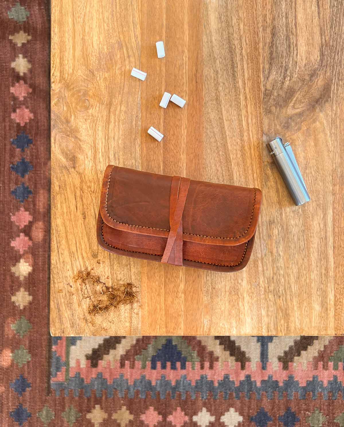 Wenn eine Drehertasche auch etwas für Nichtraucher ist, dann ist sie wohl das ganz Besonderes. Denn nicht nur der Tabak und allerhand Utensilien darum herum passen hinein, sondern die Drehertasche kann ganz unkompliziert umfunktioniert werden als Aufbewahrungsort für Deine Kopfhörer oder Akkus. „Bradley“ hält so einige Überraschungen bereit. Die Tasche selbst ist aus naturgegerbtem Ziegenleder gefertigt und weiß mit dem Vintage-Look zu überzeugen. Ein Taschenumschlag verhindert, dass etwas hinausfallen kann und auch ein Lederband zum Drum-Herum-Wickeln hilft dabei, dass nichts verloren geht.