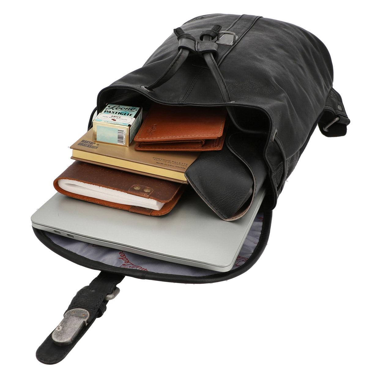 Pflanzlich gegerbt Rucksack Laptoptasche Cityrucksack Lederrucksack Aktentasche Damen Herren Schwarz Leder 14L