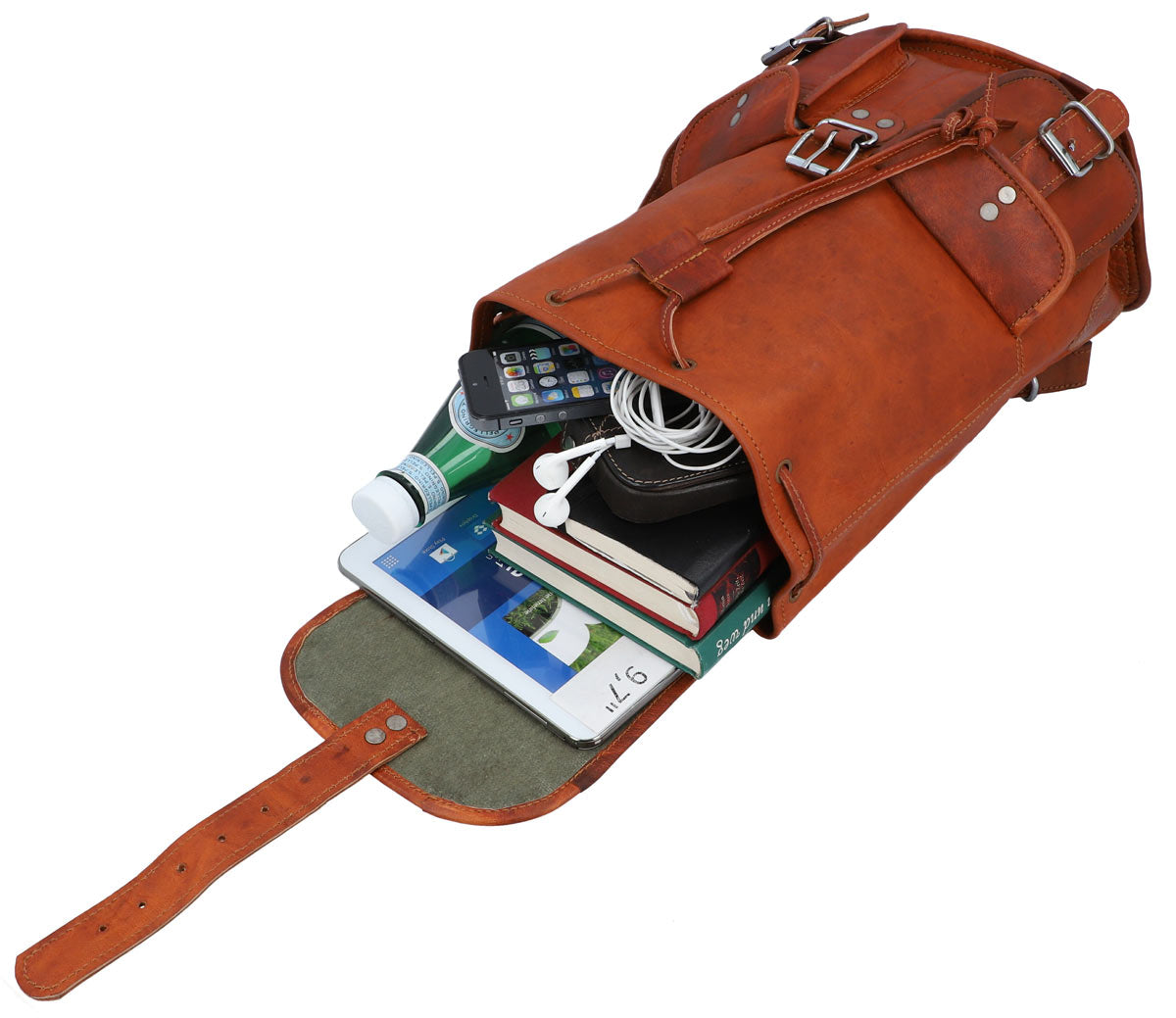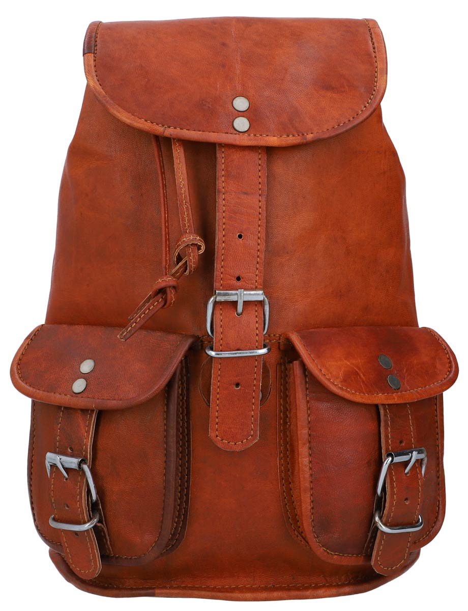 Rucksack Lederrucksack Cityucksack Damen Herren Vintage Braun Leder