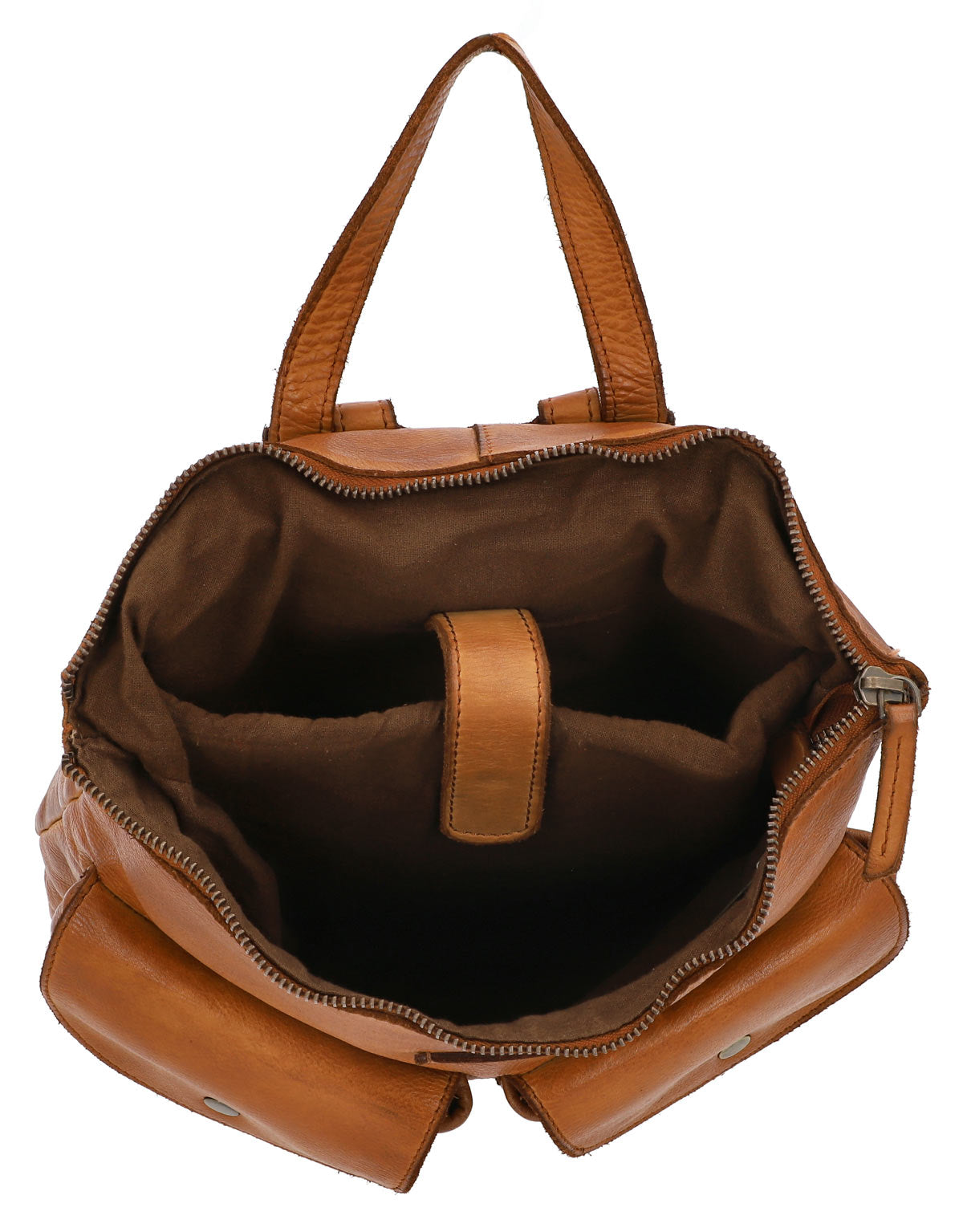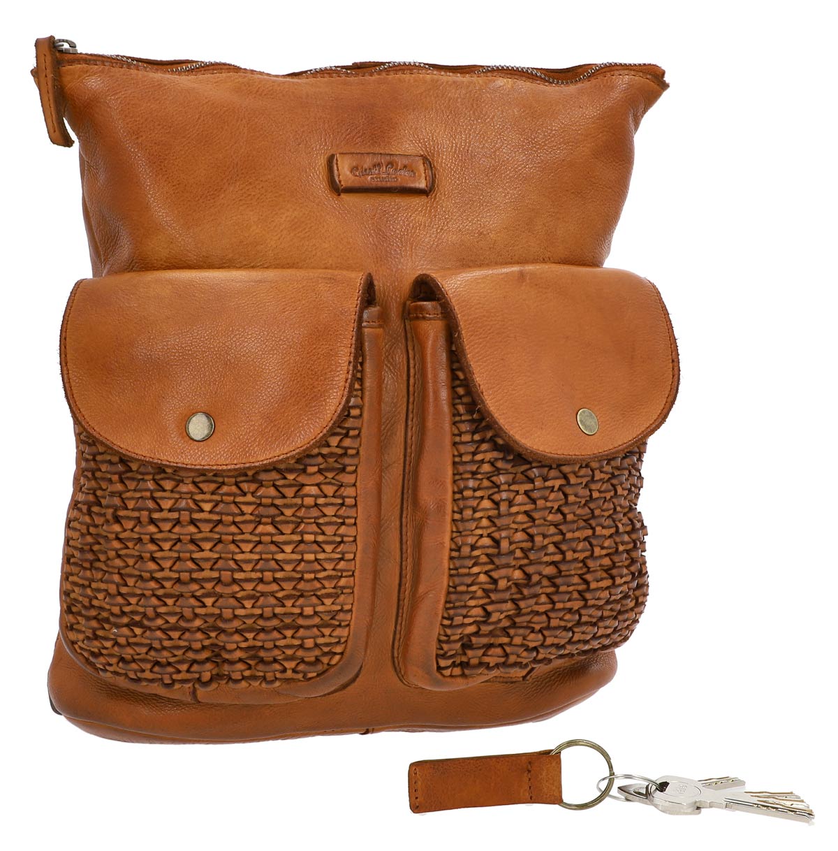 Rucksack Lederrucksack Vintage mit Schlüsselanhänger Damen Berliner Großstadt Flair Braun Leder