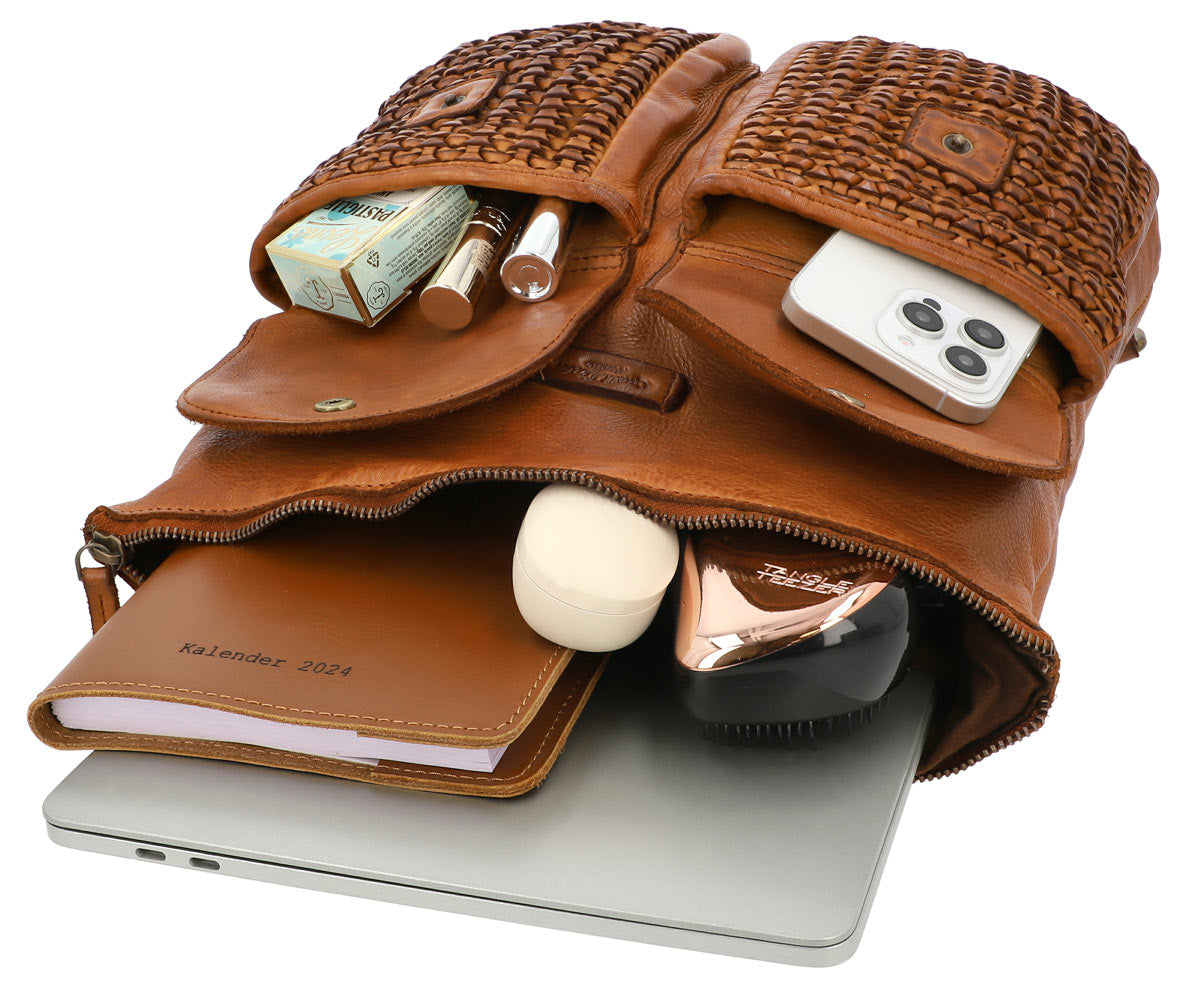 Der Rucksack "Aileen" verbindet Funktionalität mit einem modernen, zeitlosen Design und ist aus hochwertigem, gewaschenem Leder gefertigt, das ihm einen authentischen Vintage-Look verleiht. Inspiriert durch den lebendigen Berliner Großstadt Flair, begleitet Dich dieser Rucksack stilvoll bei jedem Schritt – ob im Alltag, auf Reisen oder bei der Arbeit. Seine robuste Verarbeitung garantiert Dir Langlebigkeit, während das durchdachte Design für eine elegante Erscheinung sorgt. Zusätzlich verfügt "Aileen" über ein integriertes AirTag-Fach, sodass Du Deinen Rucksack jederzeit leicht orten kannst.
