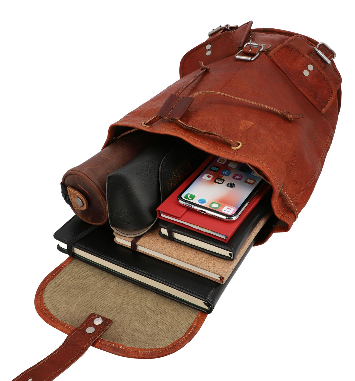 Rucksack Lederrucksack Cityucksack Damen Herren Vintage Braun Leder