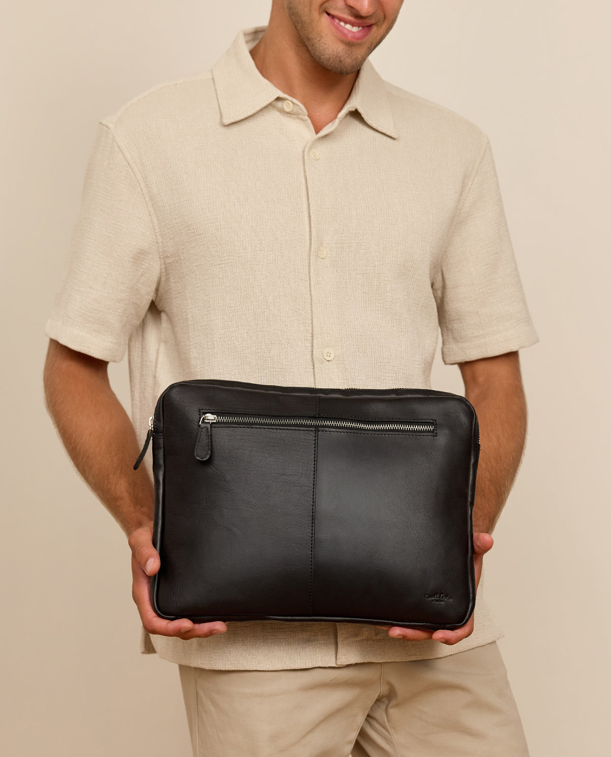 Hochwertige schwarze Ledertasche für Laptops aus pflanzlich gegerbtem Leder – Stilvolle Eleganz trifft auf praktische Funktionalität