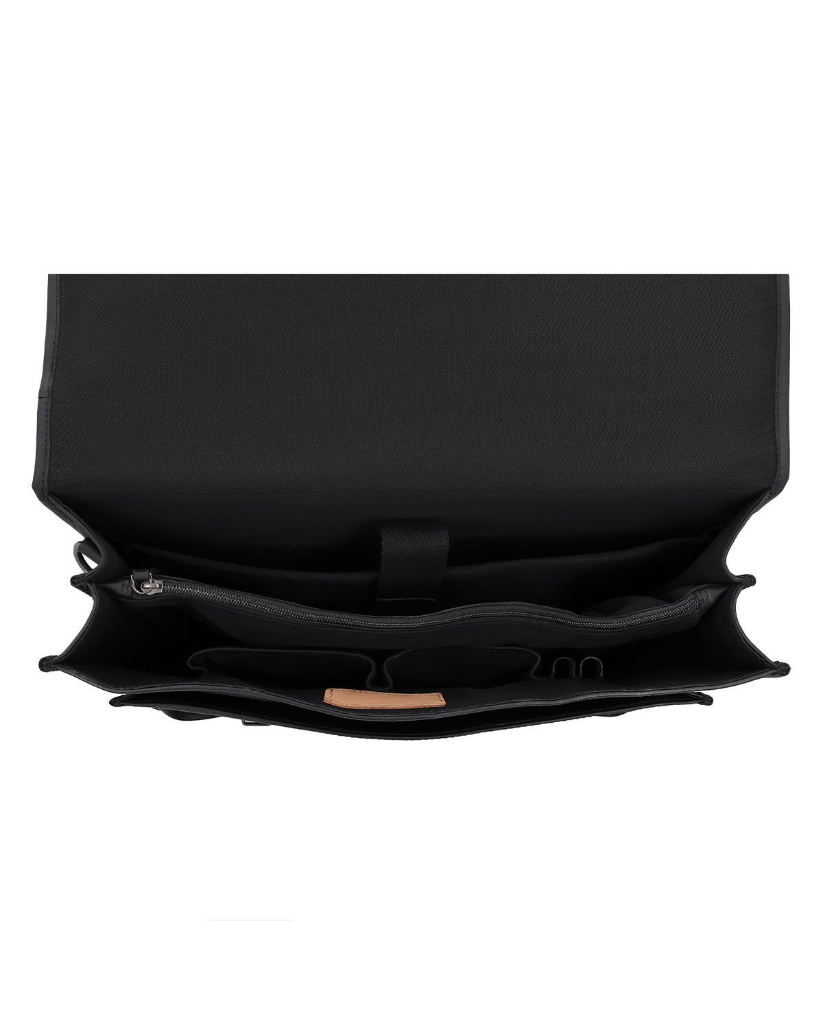 Im Inneren sorgen zwei Steckfächer und ein Reißverschlussfach für Übersicht, ergänzt durch praktische Stiftehalter, die Deine Arbeitsutensilien griffbereit halten. Ein zusätzliches Reißverschlussfach außen ermöglicht schnellen Zugriff auf wichtige Unterlagen oder Dein Smartphone. Der Schulterriemen ist verstell- und abnehmbar und passt sich Deinem Alltag flexibel an. Ein Gravur-Patch bietet Raum für Personalisierung, während die klare Aufteilung diese Aktentasche aus Leder zu einem strukturierten, verlässlichen Begleiter im Berufsalltag macht.