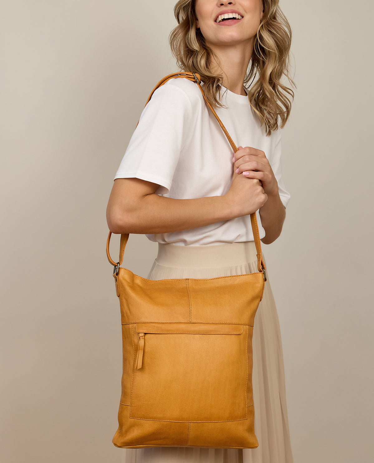 Das großzügige Hauptfach dieser hochwertig gearbeiteten Umhängetasche aus superweichem Rindsleder, in dem Du ohne Weiteres Unterlagen bis zu einer Größe von DIN A4 unterbringen kannst, sowie die zusätzlichen Steckfächer und das Reißverschluss-Innenfach bieten Dir einen optimalen Überblick über die Essentials in Deiner Tasche, ohne dass Du lange kramen musst. Und damit all das, was Du bei Dir trägst, auch sicher verstaut und gut geschützt ist, schließt "Maola" mit einem weiten stabilen Reißverschluss. Außerdem ist auf der Vorderseite ein weiteres Reißverschlussfachins Design integriert , in dem Du kleinere Dinge wie Smartphone oder Kopfhörer immer griffbereit verstauen kannst. Der längenverstellbare Trageriemen sorgt derweil für die nötige Portion Tragekomfort und Flexibilität, sodass Du "Maola" wahlweise als Schultertasche mit kurzem Träger oder als klassische Cross Body-Bag tragen kannst.