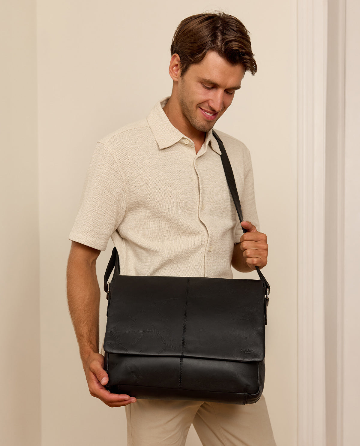 Schlicht, stilvoll und zeitlos – die Umhängetasche „Reign“ überzeugt mit ihrem klassischen Design und hochwertigem schwarzem Leder. Sie ist der perfekte Begleiter für den Alltag, ob im Büro, auf Reisen oder in der Freizeit. Die Kombination aus robustem Material und durchdachtem Design macht diese Ledertasche zu einem Must-have für stilbewusste Herren.