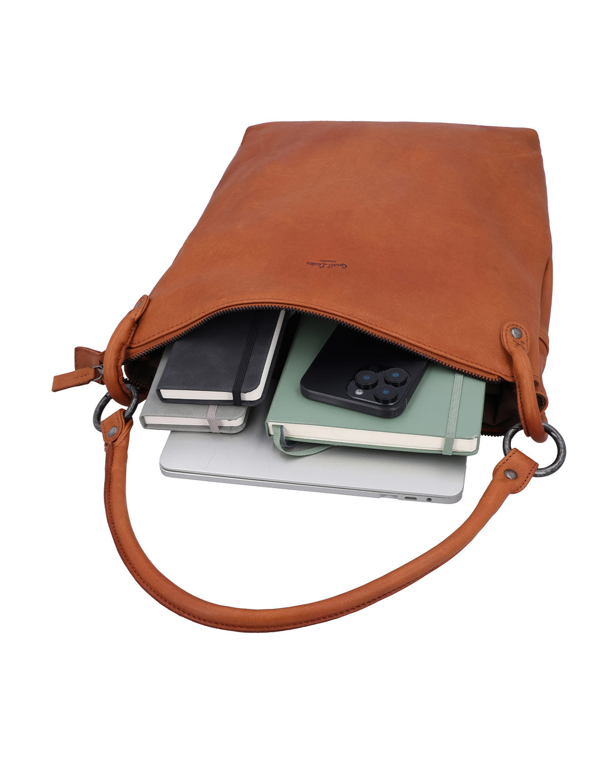 The "Cathy" Shopper is the perfect blend of practical functionality and elegant design. Made from high-quality brown leather, it impresses with robust, round handles reinforced with metal rings and featuring X-stitched leather detail. The zipper with leather pull ensures that your personal items are always safe and protected. The generous interior compartment, lined with durable cotton fabric, provides ample space for everything you need in daily life ben.