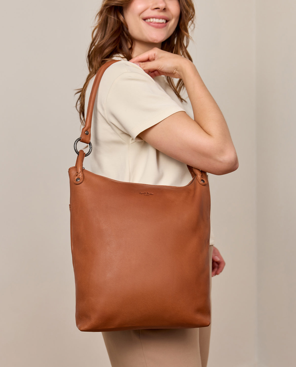 “Cathy” not only offers plenty of storage space but also thoughtful features: An integrated laptop compartment securely protects your devices up to 13", while the interior zippered compartment provides space for small valuables. The external zippered pocket on the back allows for quick access to items you want to have on hand quickly while on the go. With the leather patch for engraving inside, the bag gains a personal touch that highlights its high-quality design. Ideal for women who appreciate both style and functionality.