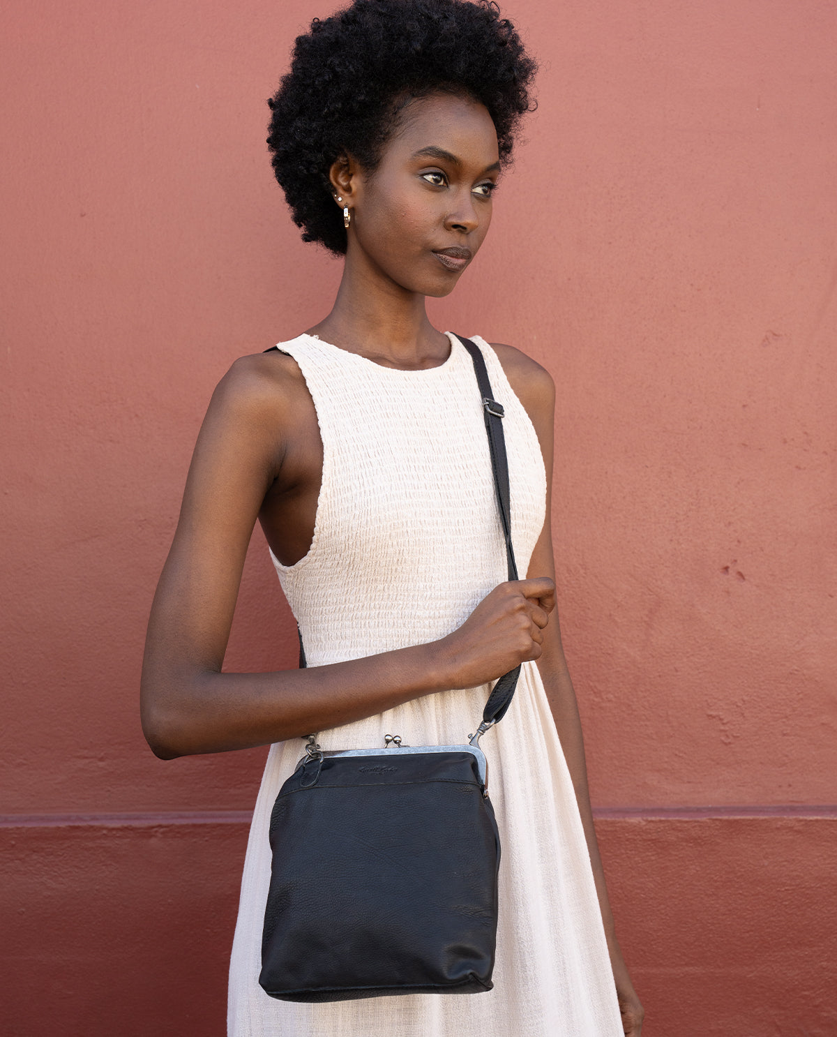 Whether for everyday use or special occasions, the Karlotta shoulder bag in classic black impresses with its timeless design and sustainable quality. Made from vegetable-tanned leather, it combines elegance with environmental awareness. The fine grain gives it a luxurious feel, while the subtle Gusti logo ensures stylish authenticity.
