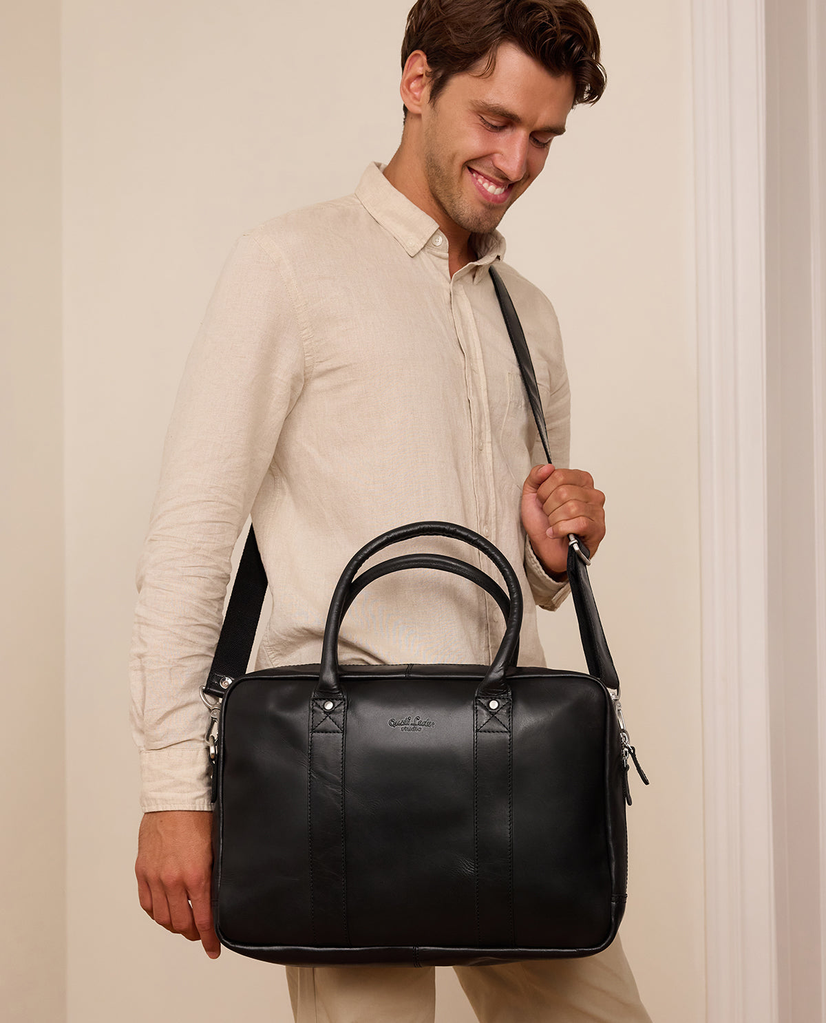 “Fynn” combines functionality and style effortlessly. He's ideal for laid-back personalities who like a bit of order. He's made of high-quality cowhide leather that's soft to the touch. “Fynn” will help you make a good impression at business meetings, making him the perfect briefcase for those who want to look good but not too “smooth”. Real people, just like you, are loving “Fynn's” business-chic vibe.
