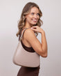 Inside the "Begonia," you'll find a practical zip pocket that helps you keep your valuables safe and neatly stored. The integrated leather patch on the inside adds a touch of luxury and individuality. The sturdy zipper closure keeps your belongings secure and protected. Thanks to the thoughtful design, the bag not only offers ample space but remains elegant and functional at all times. The "Begonia" is the ideal bag for the modern woman who values style and organization.