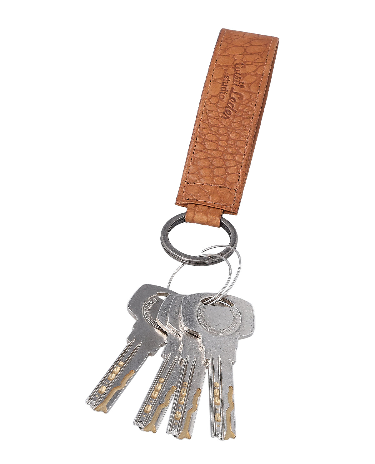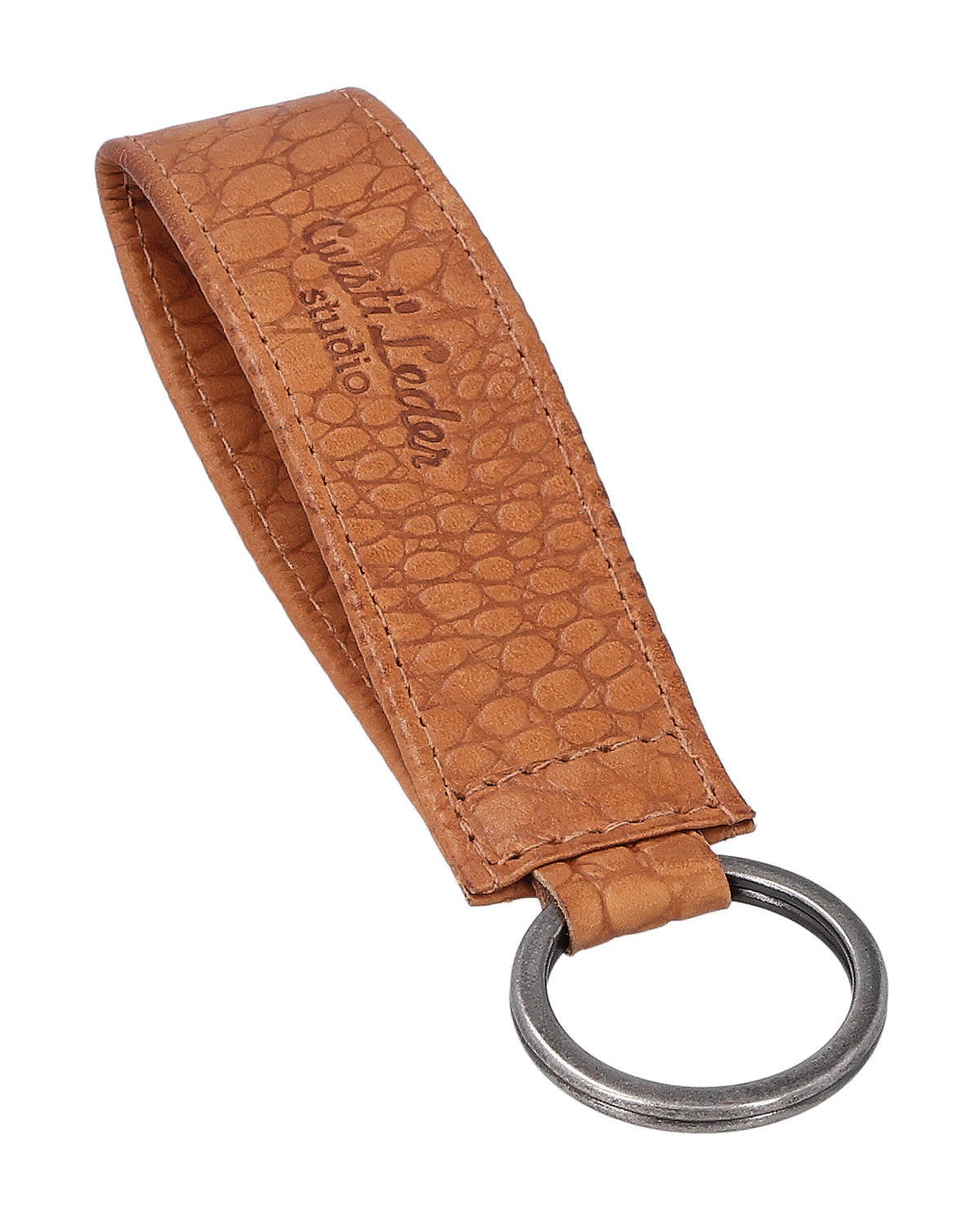 The "Miran" key ring is a brown leather accessory for men and women that impresses with its clear shape and minimalist design. The simple design has a timeless look and easily adapts to different bags or key rings. Thanks to the sturdy metal ring, your keys remain securely attached and always within reach. "Miran" stands for uncomplicated functionality in a compact format.