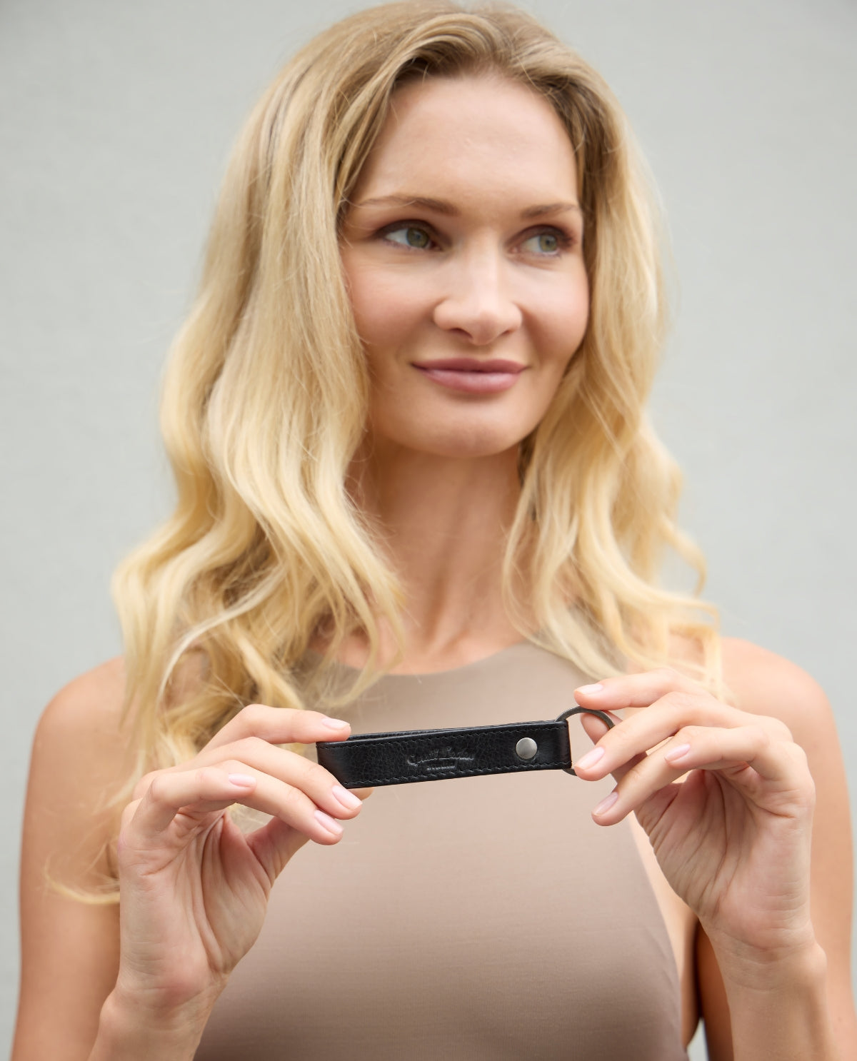 "Domenico" is an elegant key ring made of high-quality leather that adds a touch of style to your everyday life. Its slim, modern design makes it a timeless companion that can be easily attached to your keys, bags, or backpacks. The soft leather feels pleasant in the hand and gives the key ring a particularly elegant feel – perfect for anyone who values high-quality details.