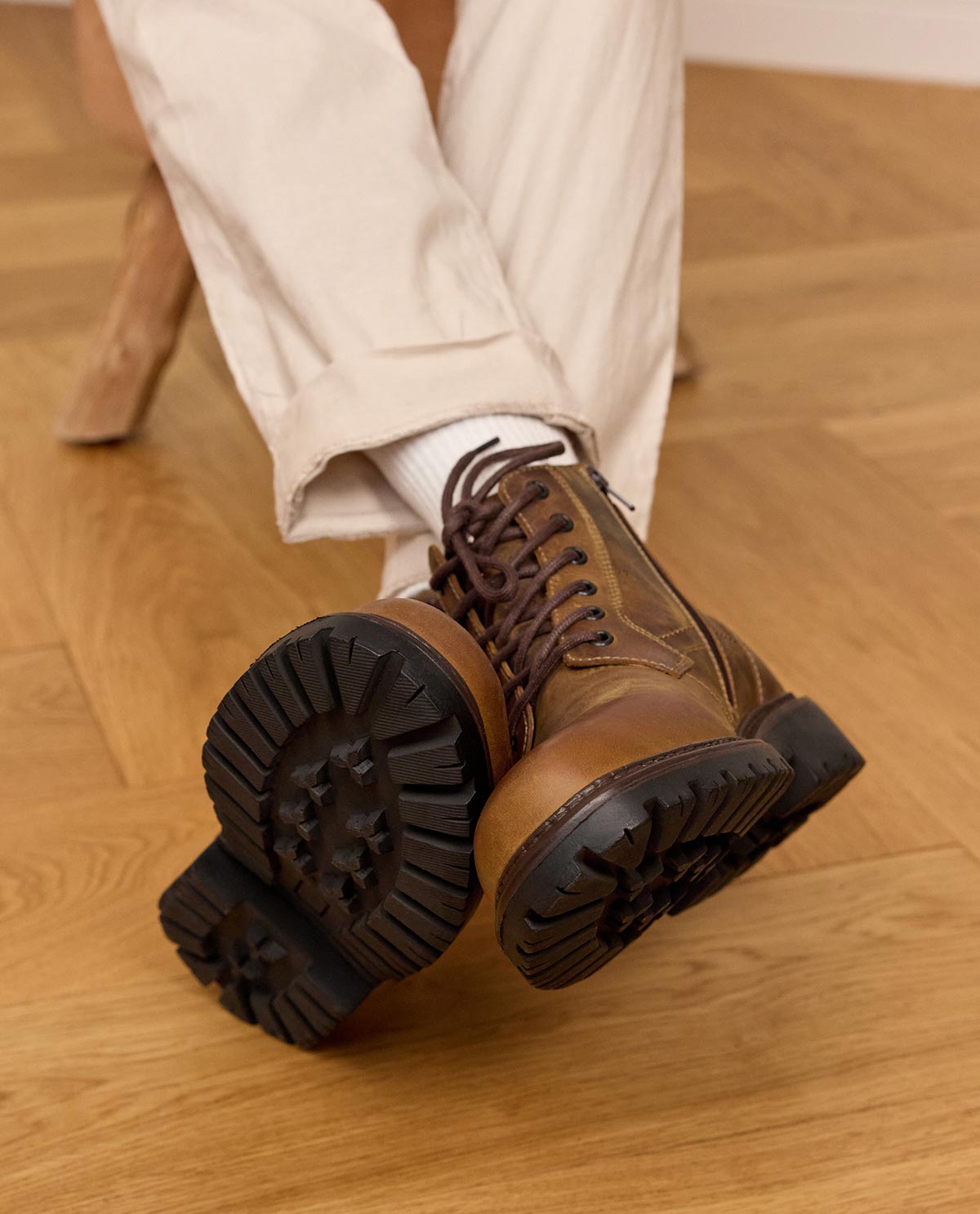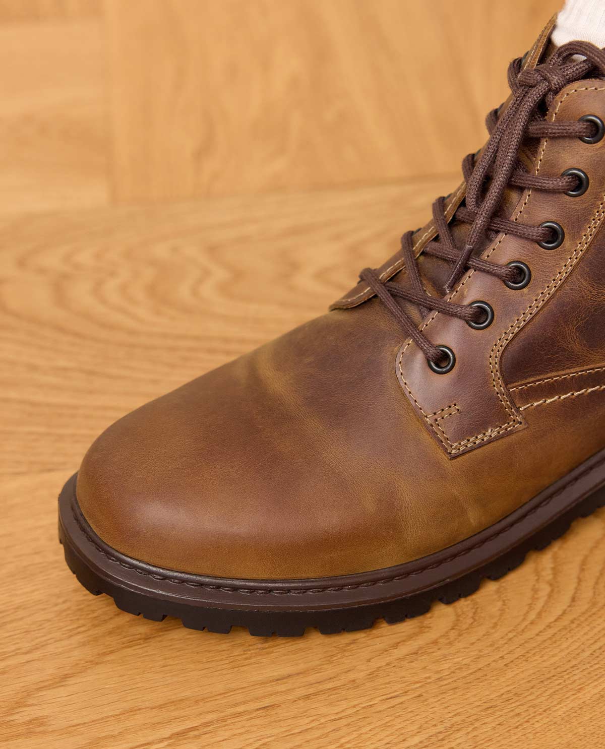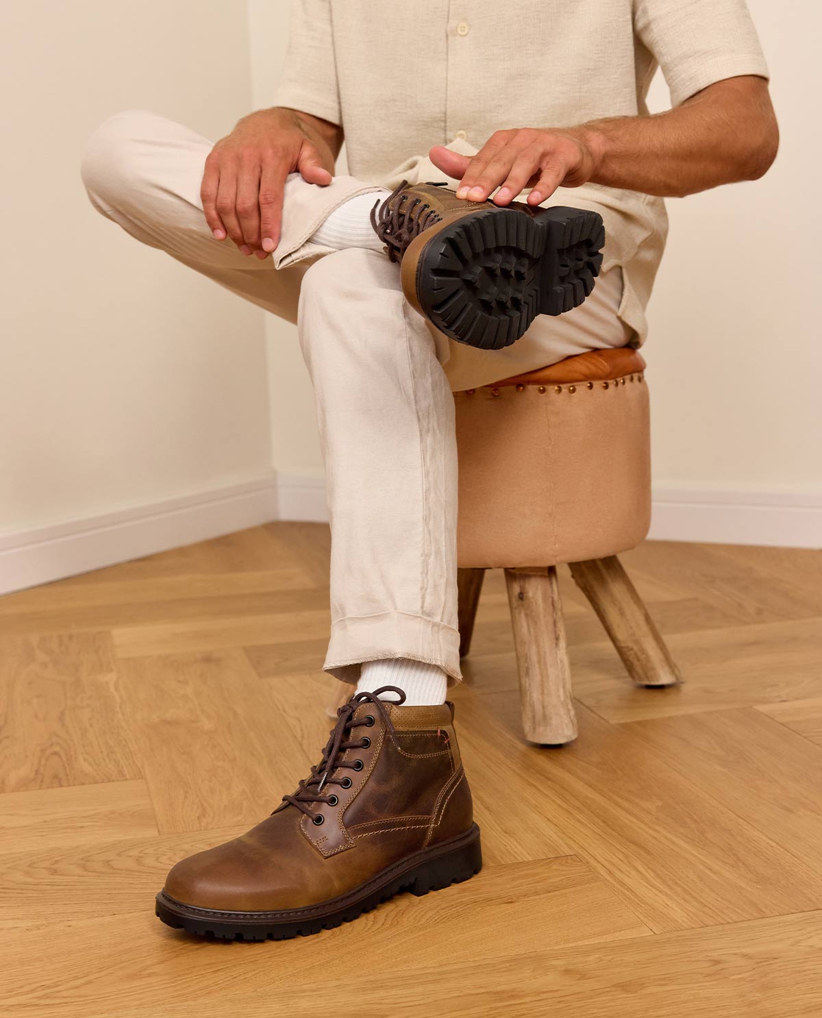 Inside, "Oberon" impresses with a checked textile lining and a combination of leather and fabric inserts that guarantee breathability and wearing comfort. The insole made of cowhide leather offers a pleasant walking experience, while the sole made of polyurethane combines flexibility and stability – ideal for long days on your feet. An embossed Gusti Leather logo on the heel emphasizes the high-quality craftsmanship and timeless style. With "Oberon", you enjoy a shoe that perfectly harmonizes elegance, comfort, and artisanal quality – for the modern man with a sense of style.