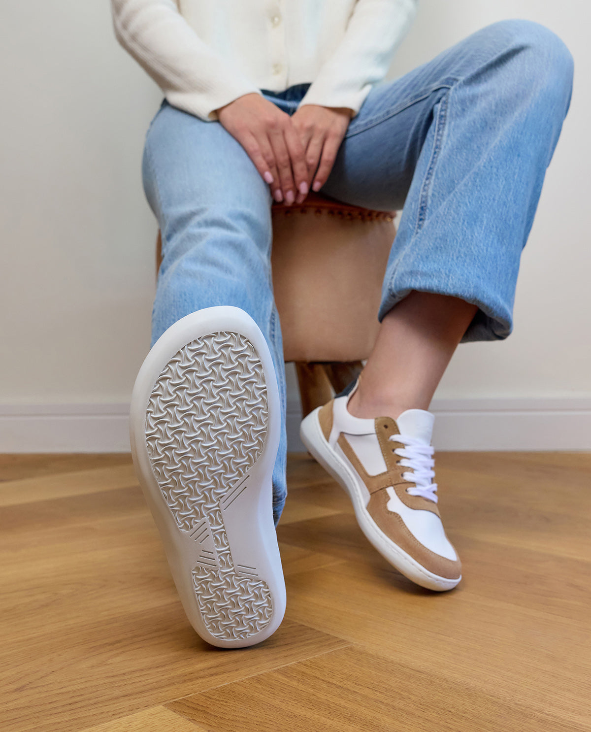 Shoes sneakers trainers leather shoes barefoot shoes women white brown leather