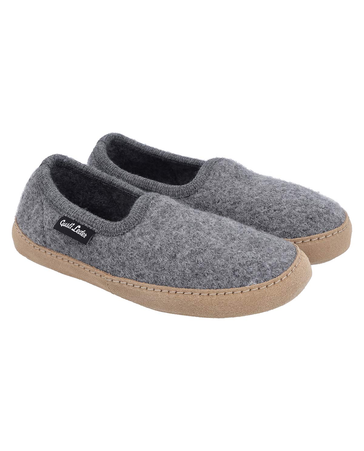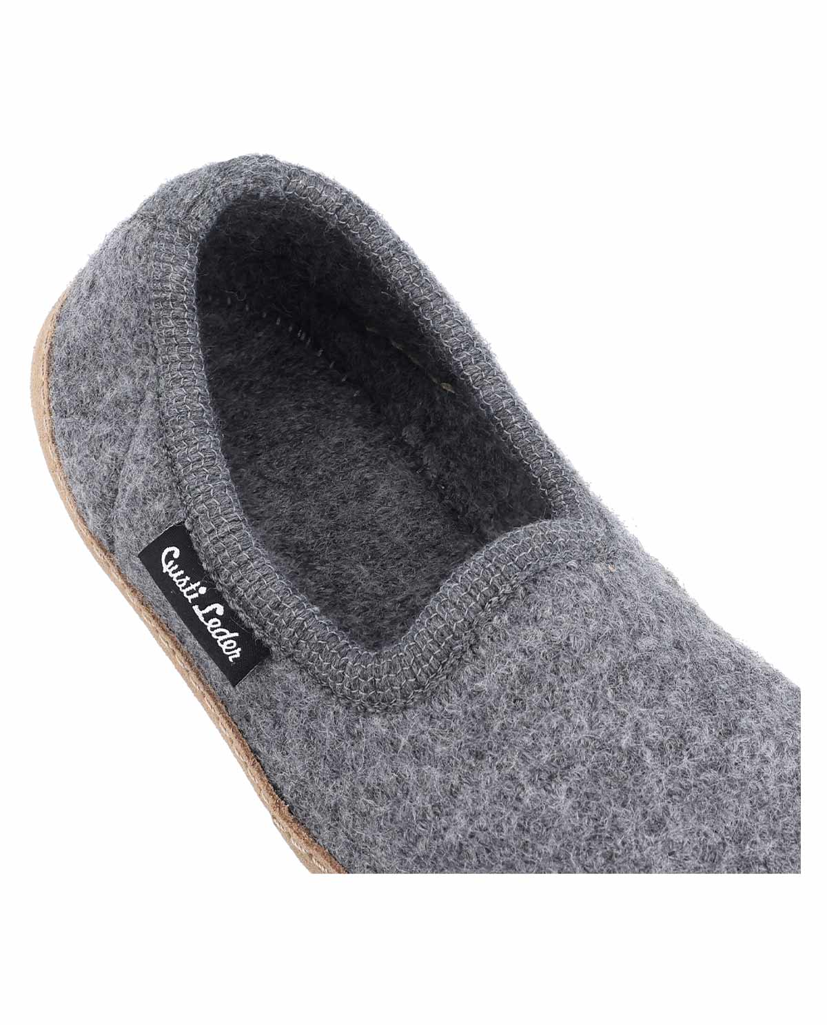 The outsole made of genuine leather provides a flexible base and quiet steps on all floor coverings, while the padded insole made of virgin wool conveys a springy walking sensation, as if you were walking on clouds. The slippers are manufactured in Europe – in Austria and Hungary – and stand for sustainable processing and natural materials. A small fabric label with the white "Gusti Leather" logo and a woven size label in the heel area complete the high-quality workmanship. With "Marah" you enjoy comfort, style, and environmental awareness in one shoe.