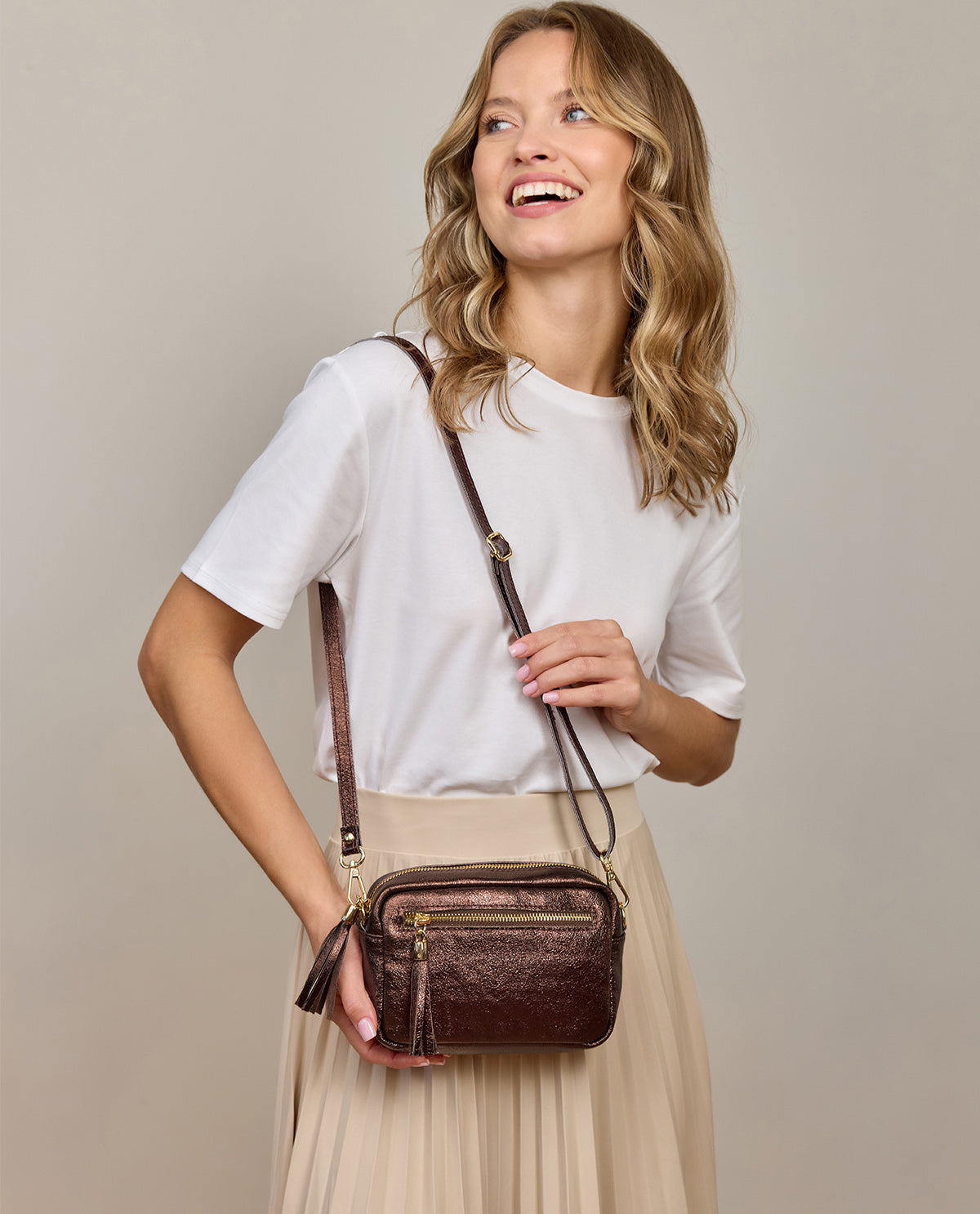 The detachable and length-adjustable strap ensures personalized comfort, whether over the shoulder or as a crossbody bag. This makes the "Cariba" particularly flexible and adaptable, allowing it to effortlessly fit into your daily life. Additional functionality is provided by the practical zip pocket on one side, where you can securely store small items. With the "Cariba", you not only have a stylish but also an extremely practical bag for any occasion.