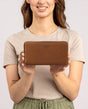The "Cara" is the perfect wallet for anyone looking for a stylish yet practical solution for their finances. Made from high-quality brown leather, it impresses not only with its noble appearance but also with its excellent craftsmanship. With a zip-around closure and a second zip compartment, it offers secure storage for your cash and valuables. This wallet ensures order and provides you with ample space for all your essentials.