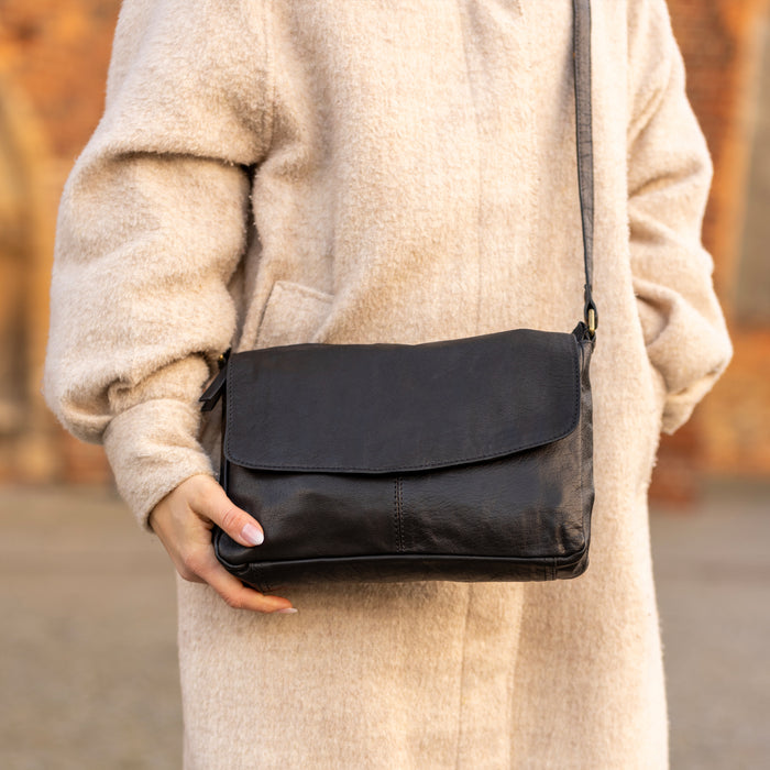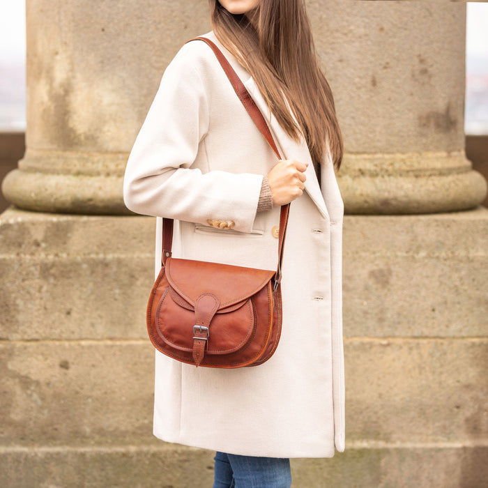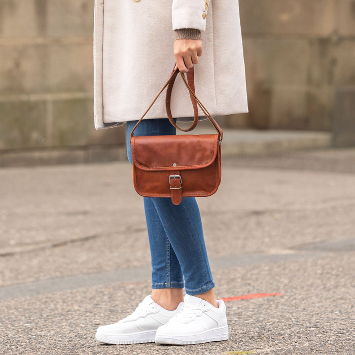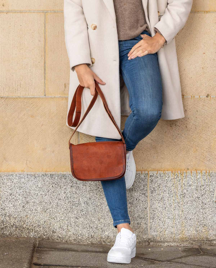 Functional and fashionable, our crossbody bag "Candice" is the perfect companion when exploring the city, spending a day with friends, or discovering the countryside. This leather beauty is lightweight and compact, yet offers plenty of space inside for your belongings. The adjustable strap is comfortable to wear.