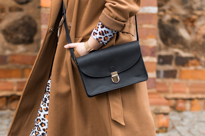 Going to an evening meeting? Then take our black leather handbag "Zoey" with you. The vintage bag adds an elegant touch to your look. "Zoey" is a fashionable women's handbag with a main compartment with an additional pocket and an external pocket for your essentials.