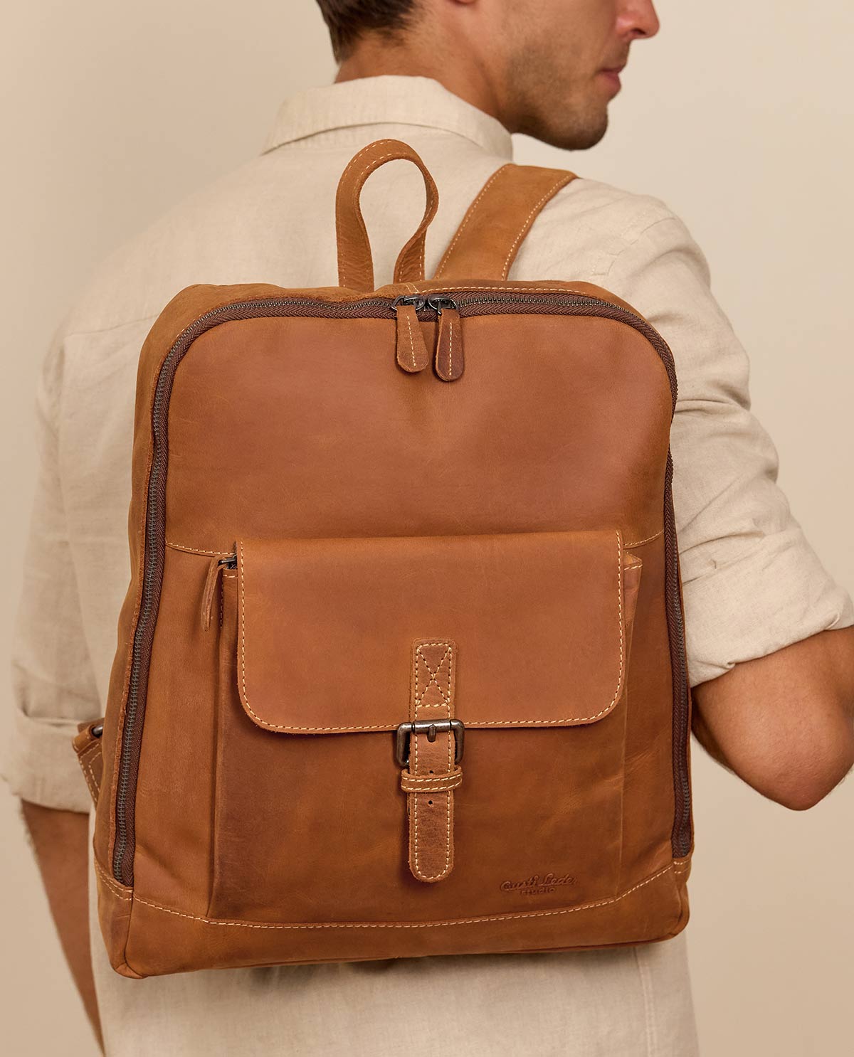 High comfort, functionality, and plenty of space are offered by our "Ove". This chic leather backpack made from high-quality processed buffalo leather is wonderfully suitable as a companion for leisure, vacation, a small city stroll, but also for the everyday trip to the office. It scores with timeless elegance and casualness!