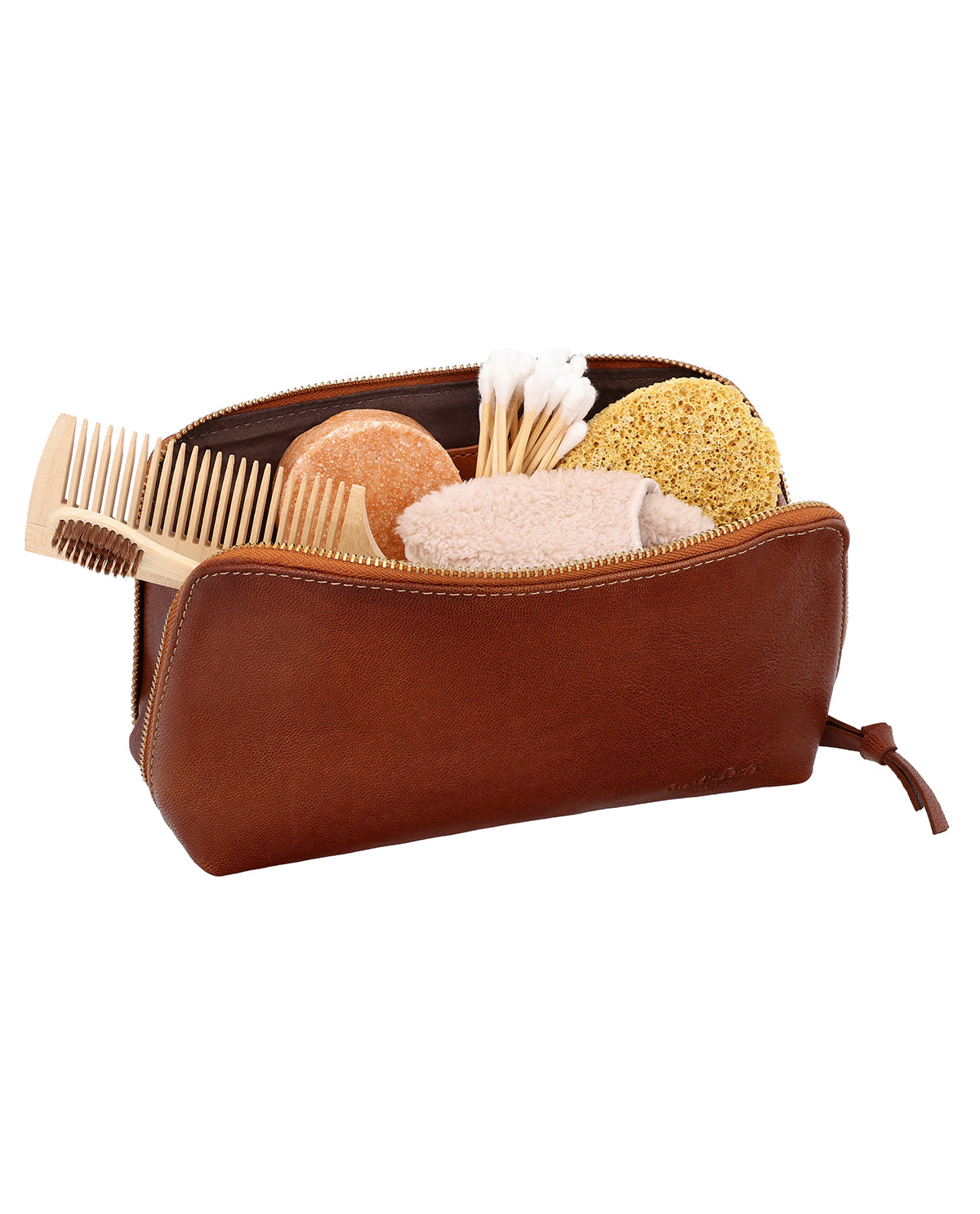 Made from high-quality, durable leather, "Eli" offers the perfect space for all your toiletries. The spacious main compartment inside offers enough space for deodorant, shampoo, conditioner, toothpaste, toothbrush, and much more. The design of "Eli" is rounded off with a matching zipper. This keeps everything together and optimally stored.