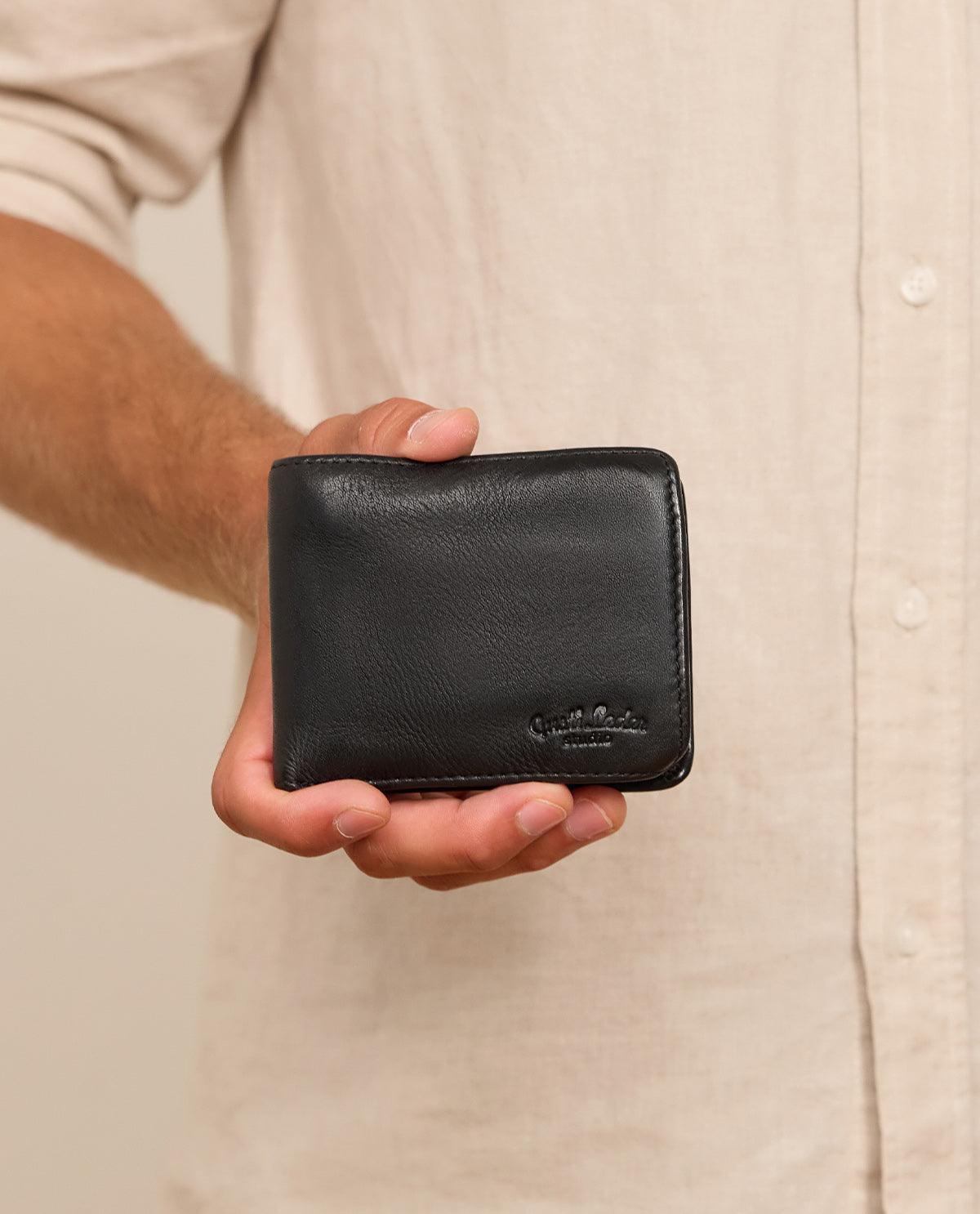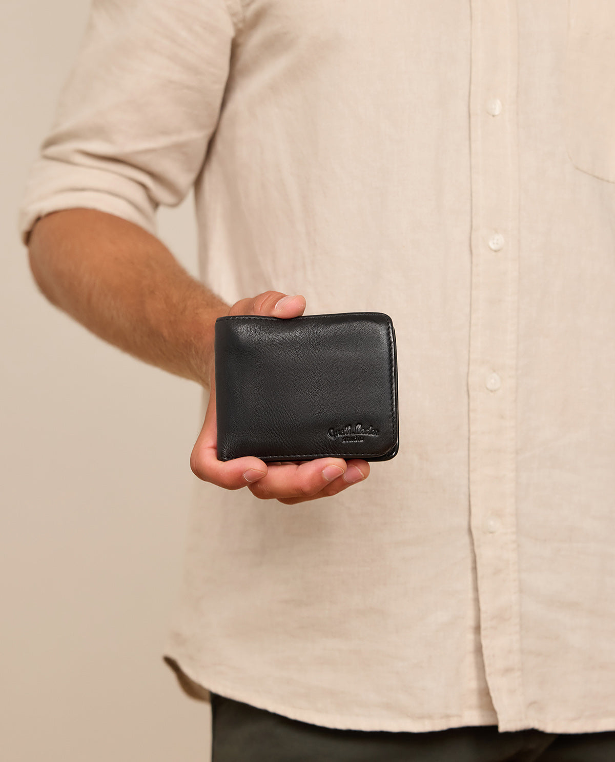 Do you know that feeling? When you’re on the go, you often lack a place for cards or bills. With the wallet made of vintage black leather, this problem is a thing of the past. Perfect for travel or short trips – this wallet fits into any of your pockets and ensures you are always well-organized.